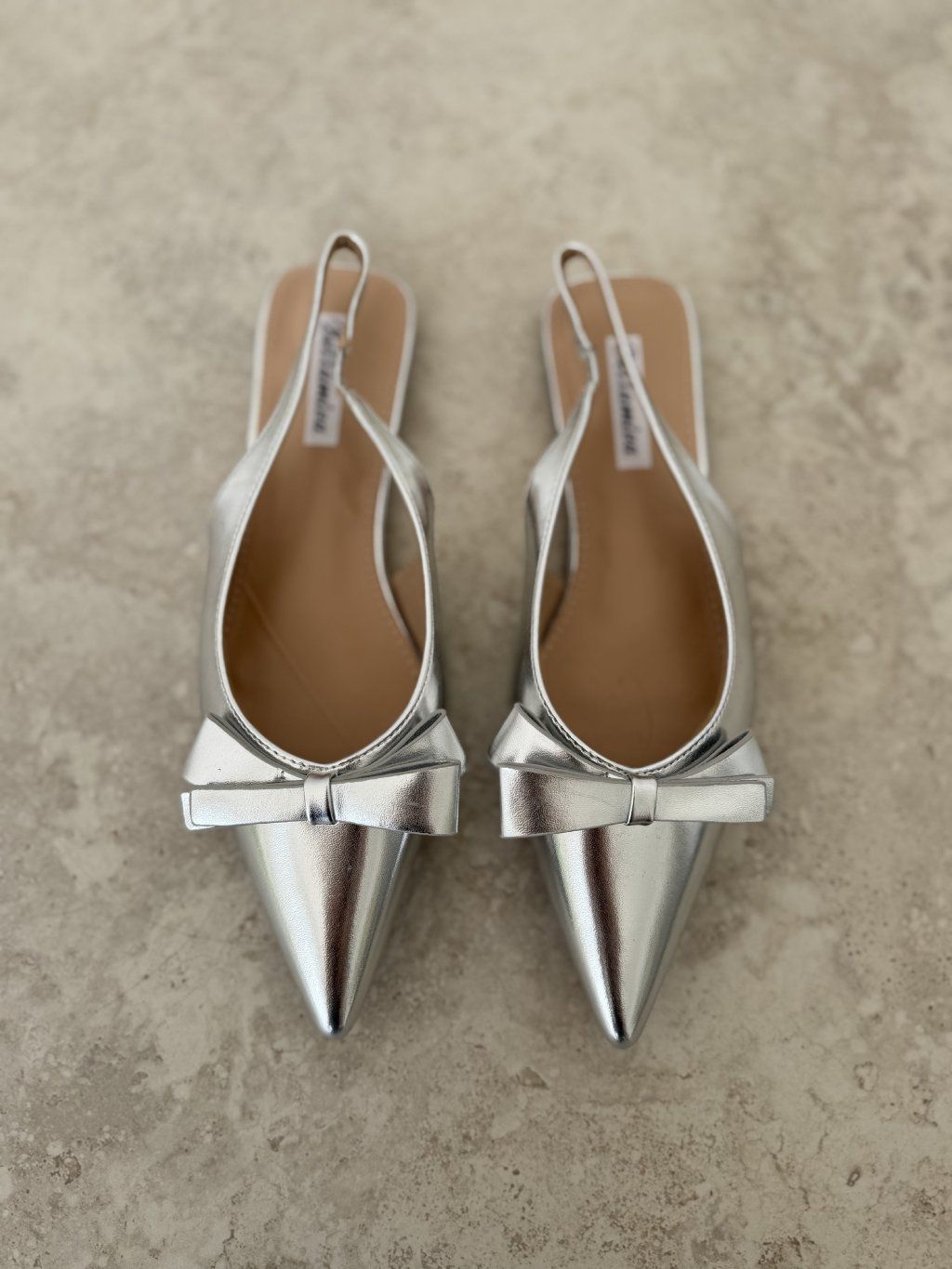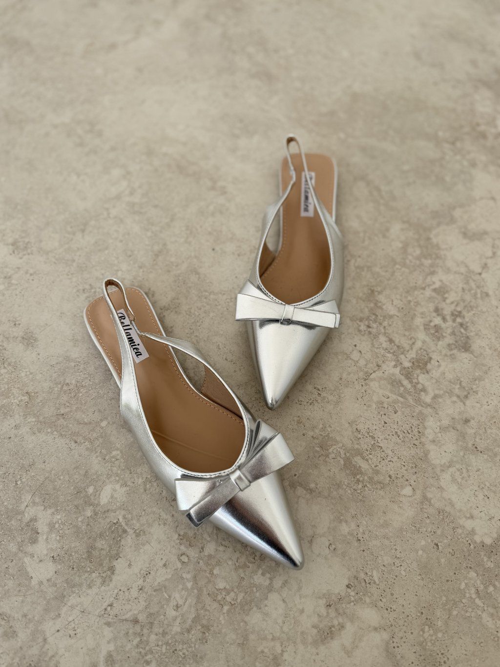 Elegantné baleríny s otvorenou pätou a mašľou sú ženským doplnkom, ktorý krásne oživí šaty, sukňu aj nohavice. Špicatá špička a jemný detail na prednej časti dodávajú modelu sofistikovaný a romantický vzhľad.