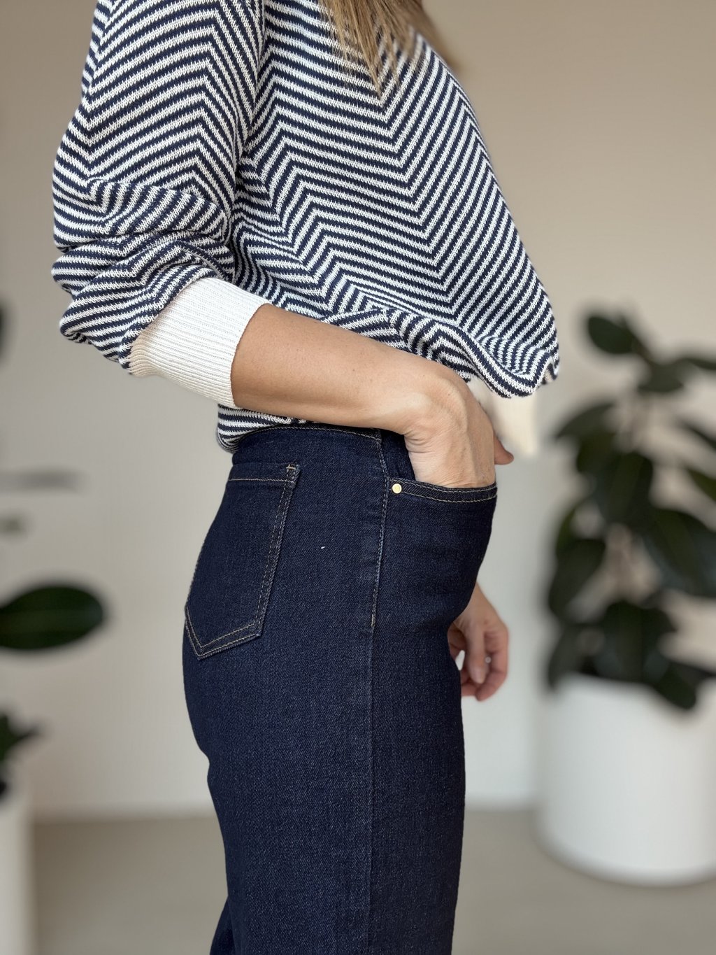 Moderné balónové rifle s vysokým pásom a mierne voľným strihom, ktorý pôsobí pohodlne a zároveň štýlovo. Klasický denim dodáva nadčasový vzhľad a ľahko sa kombinuje s rôznymi kúskami vo vašom šatníku. Ideálne na každodenné nosenie, keď chcete spojiť komfort a eleganciu.