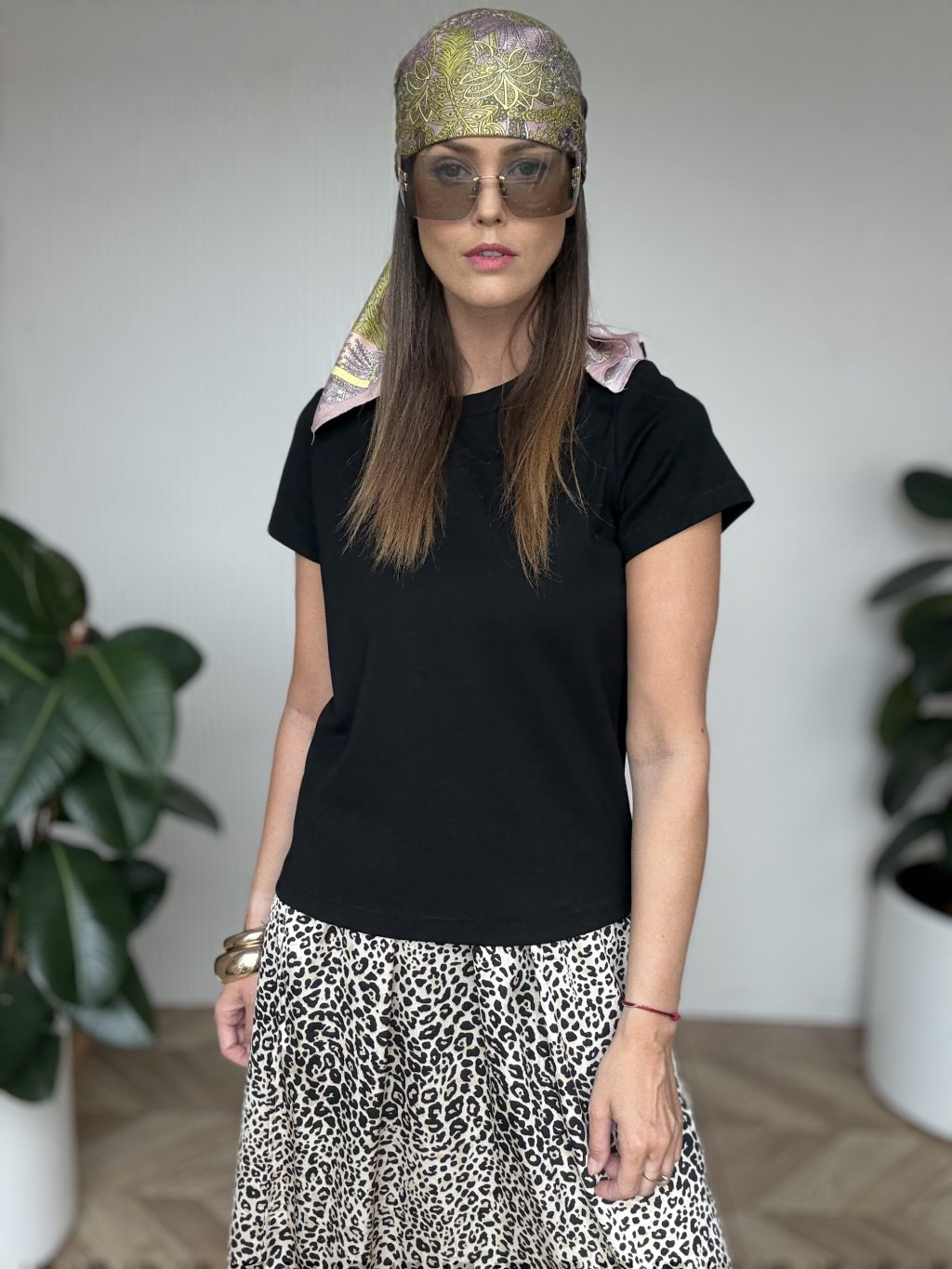 Základné bavlnené tričko je nevyhnutnosťou v každom šatníku. Vďaka svojmu čistému a jednoduchému dizajnu je ideálnym kúskom na každodenné nosenie aj vrstvenie. Kvalitný materiál poskytuje maximálny komfort, priedušnosť a príjemný pocit na pokožke. Klasický strih s krátkym rukávom a okrúhlym výstrihom zaručuje nadčasový vzhľad a ľahkú kombinovateľnosť s akýmkoľvek outfitom.