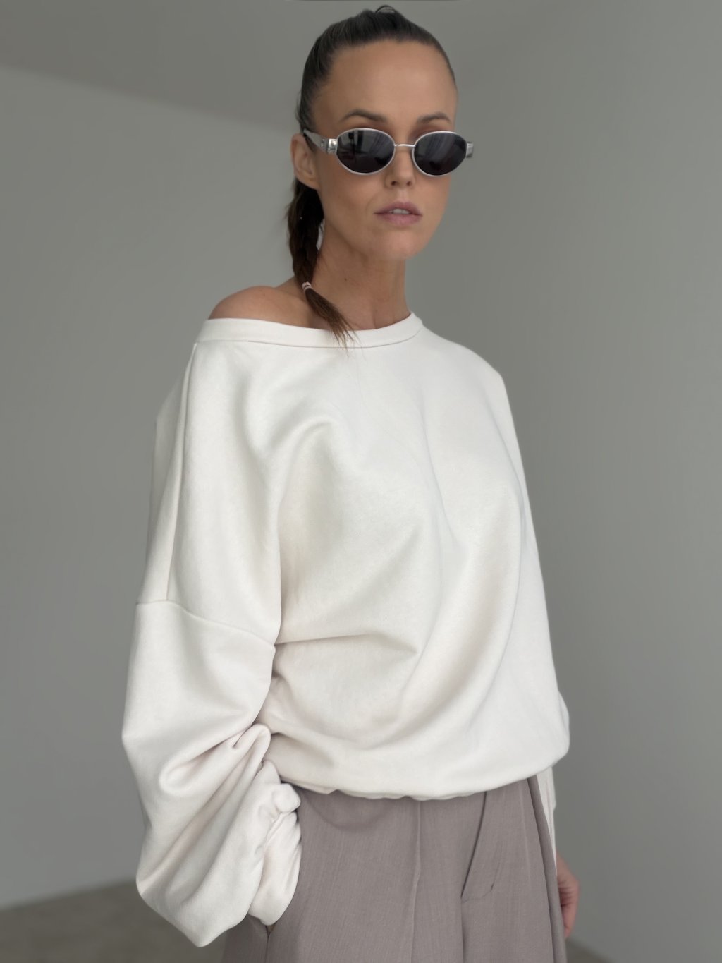 Bavlnená oversize mikina je ideálnym kúskom pre ženy, ktoré milujú pohodlie, no zároveň chcú, aby ich outfit pôsobil štýlovo a moderne. Voľnejší strih vytvára uvoľnený efekt, zatiaľ čo zaujímavo riešený výstrih odhaľujúci jedno rameno dodáva celému vzhľadu jemný ženský akcent. Mikina pôsobí nenútene, no práve vďaka svojmu strihu vie vytvoriť outfit, ktorý zaujme na prvý pohľad.