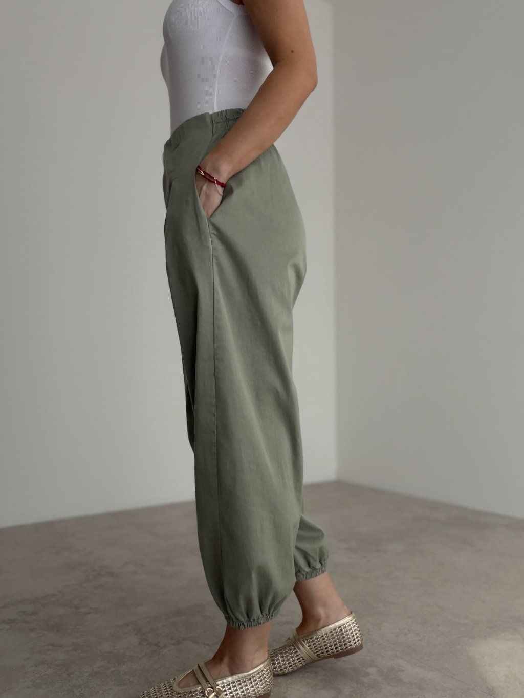 Pohodlné bavlnené nohavice s moderným strihom a pružnou zadnou časťou pása sú ideálnou voľbou na každodenné nosenie. Ľahko sa kombinujú a dodajú outfitu štýlový, uvoľnený vzhľad.