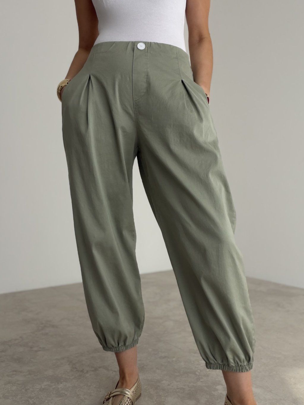 Tieto bavlnené nohavice sú skvelou voľbou pre ženy, ktoré hľadajú spojenie pohodlia, moderného strihu a ľahkej kombinovateľnosti. Príjemný materiál zabezpečuje komfort pri nosení počas celého dňa a vzdušnejší strih dodáva modelu uvoľnený, no zároveň štýlový vzhľad. Predná časť pôsobí upravene a čisto, zatiaľ čo zadná pružná časť pása zvyšuje pohodlie a lepšie sa prispôsobí postave.