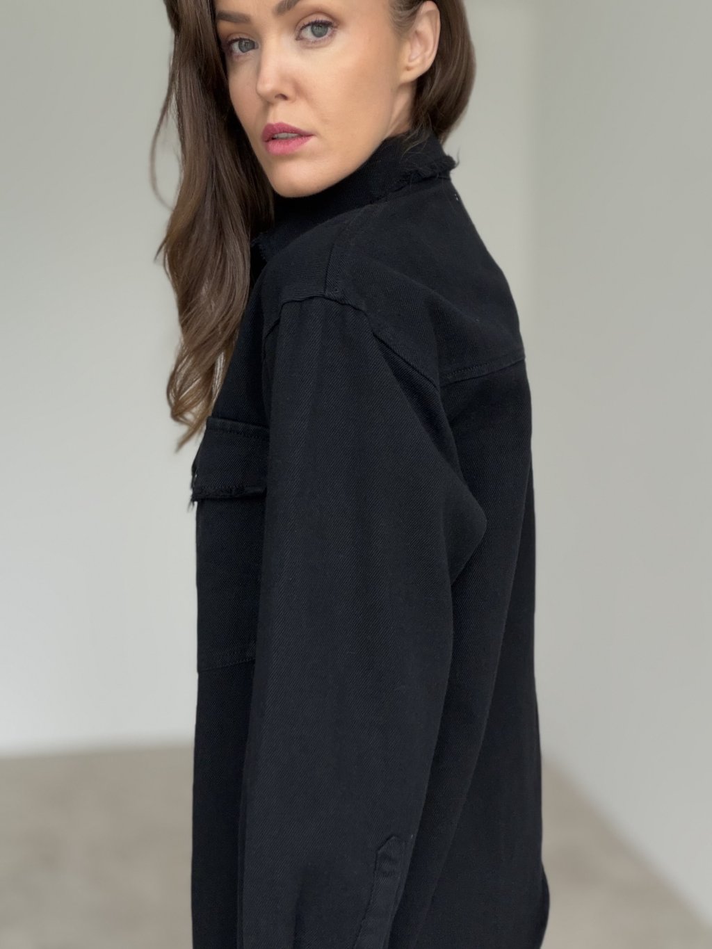 Táto košeľa v štýle „shacket“ je ideálny kúsok na vrstvenie počas celého roka. Má pevnejší, tvar držíci materiál, vďaka ktorému pôsobí upravene, no zároveň ležérne. Strih je voľnejší a pohodlný, takže sa dobre nosí aj cez top, rolák či tenšiu mikinu. Zapínanie je riešené patentkami a praktické náprsné vrecká s chlopňou dodávajú košeli výraznejší, mestský charakter. Detail jemne surového ukončenia na okrajoch pôsobí moderným dojmom a zvýrazňuje trendový vzhľad.