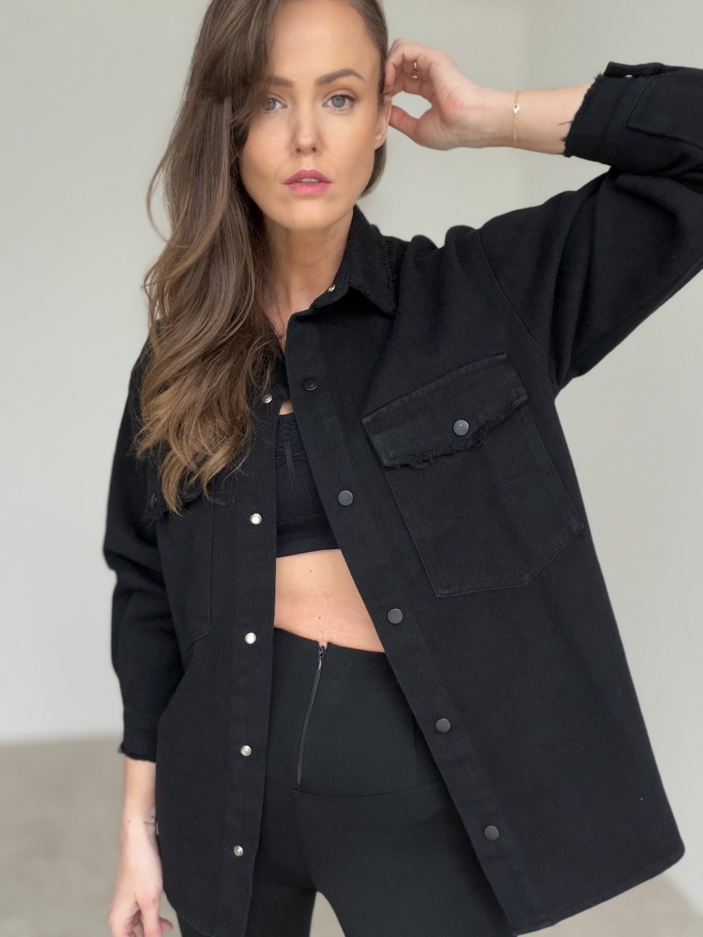 Voľnejšia košeľa v štýle shacket so zapínaním na patentky a náprsnými vreckami. Ideálna na vrstvenie a každodenné nosenie.