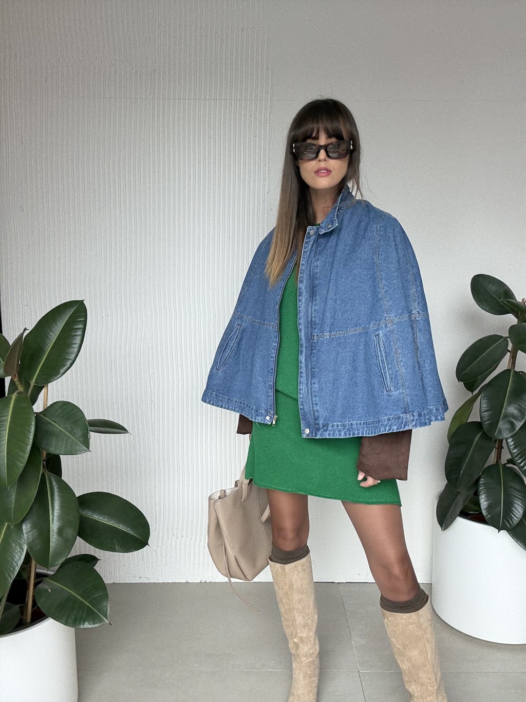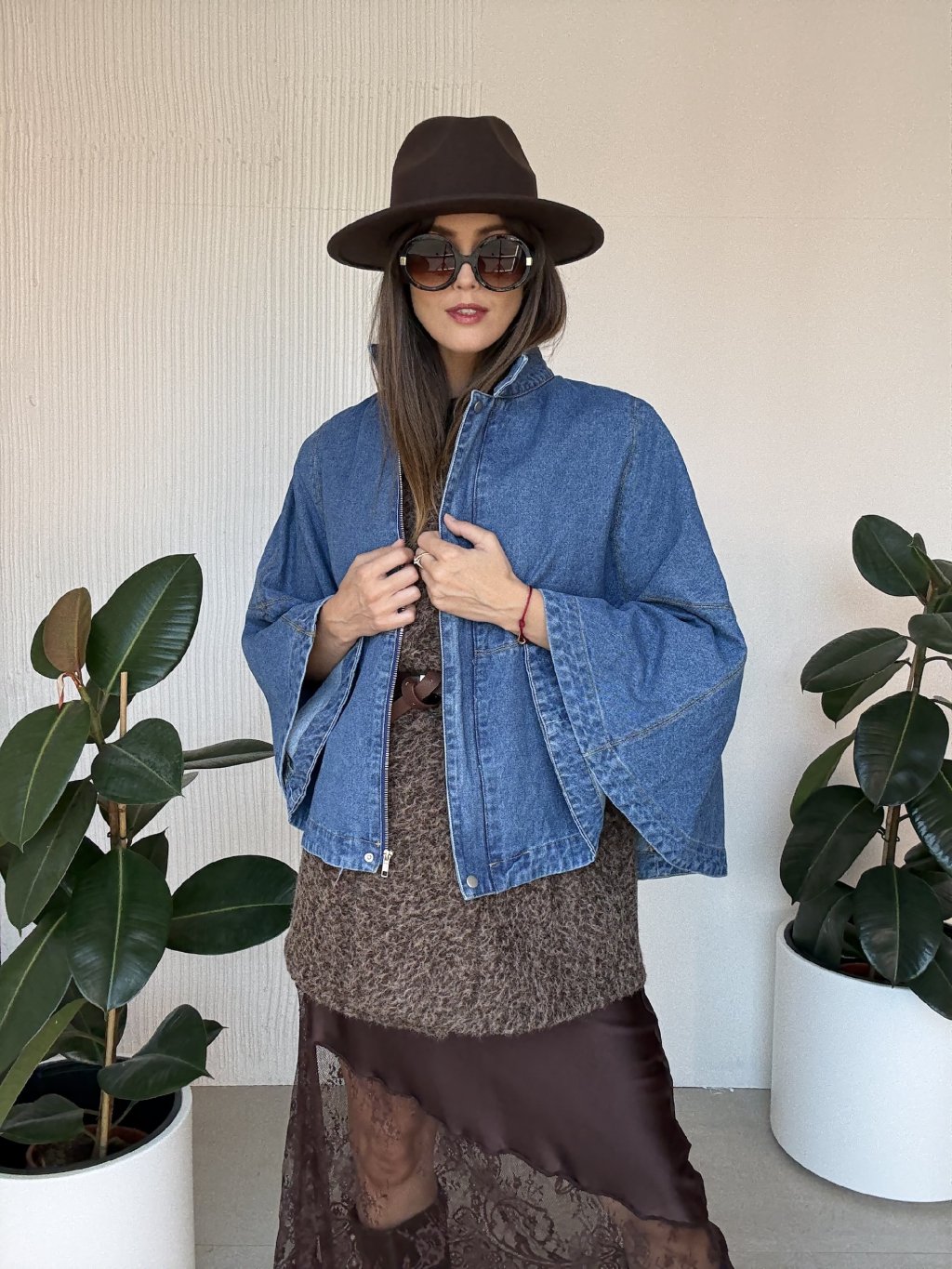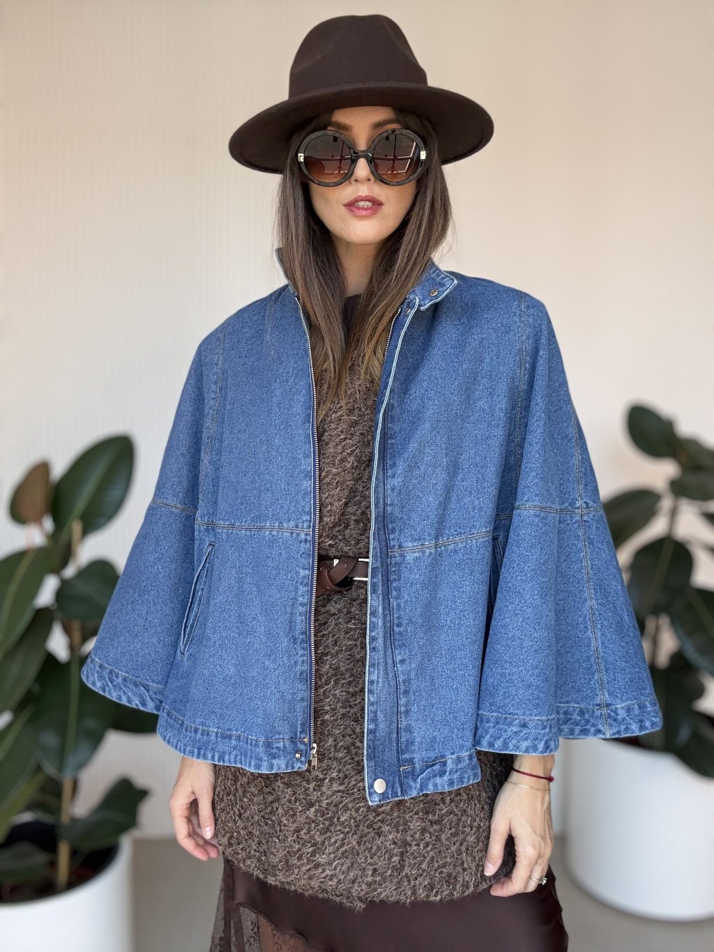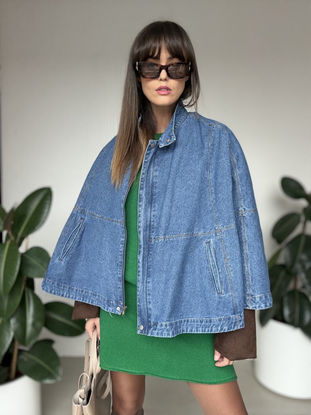 Denimová pelerína je originálnym kúskom, ktorý kombinuje moderný štýl s pohodlím. Voľný strih a široké rukávy dodávajú ležérny, no zároveň výrazný vzhľad, ktorý sa ľahko kombinuje s rôznymi outfitmi. Kvalitný denimový materiál zaručuje dlhú životnosť a nadčasový charakter. Tento kúsok je ideálny na prechodné obdobie a dokáže pozdvihnúť aj jednoduchý outfit na vyššiu úroveň.