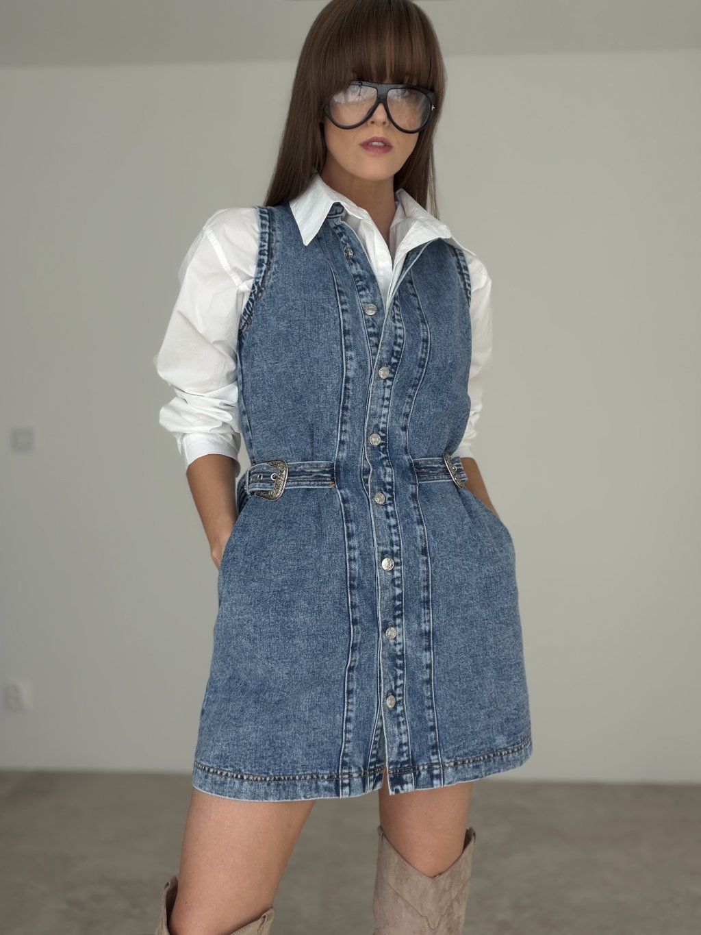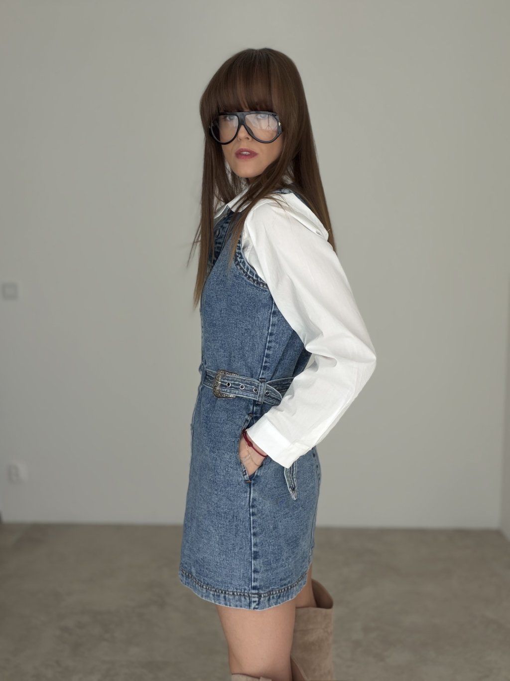 Tieto denimové šaty sú výrazným a zároveň nadčasovým kúskom, ktorý v sebe spája ženskosť, štýl a sebavedomý mestský charakter. Ich prepracovaný strih krásne formuje siluetu, zvýrazňuje pás a zároveň pôsobí moderne a upravene. Praktické detaily a originálne spracovanie robia z tohto modelu kúsok, ktorý zaujme na prvý pohľad a ľahko sa stane dominantou celého outfitu.