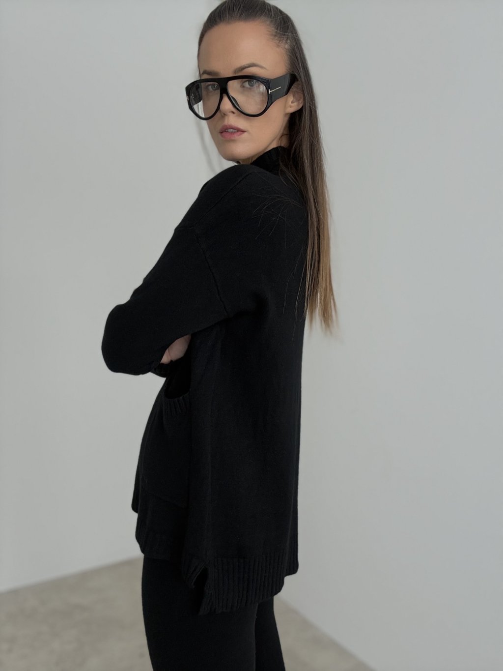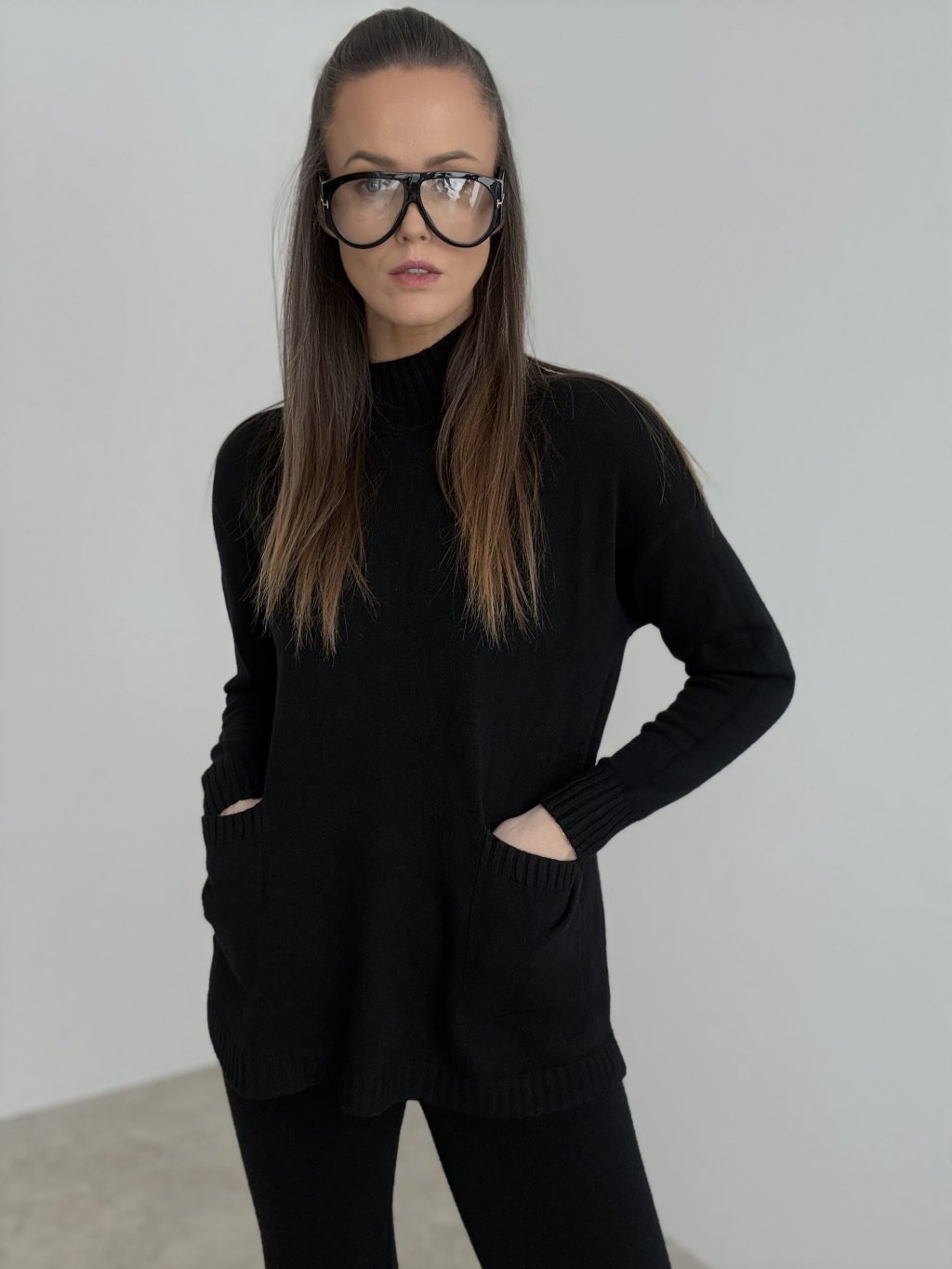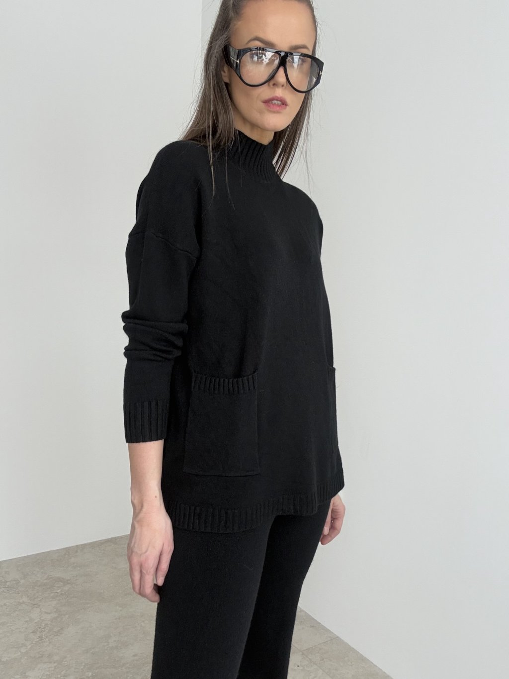 • Pre vyváženú siluetu môžeš prednú časť pulóvra jemne zastrčiť do pásu nohavíc.