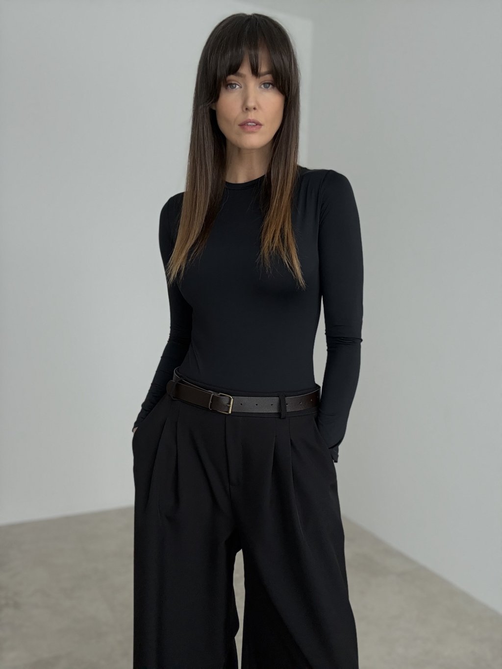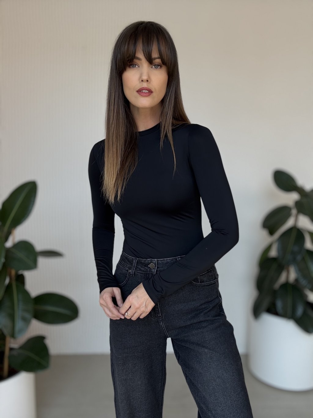 Elastické body s dlhým rukávom je univerzálnym kúskom, ktorý dokonale obopne postavu a zvýrazní siluetu. Príjemný pružný materiál poskytuje komfort počas celého dňa a zaručuje maximálne pohodlie pri nosení. Jednoduchý dizajn sa ľahko kombinuje so sukňami, nohavicami aj džínsami, takže sa stane obľúbeným základom každého šatníka. Ideálne na bežné nosenie, ale aj na elegantnejšie príležitosti.
