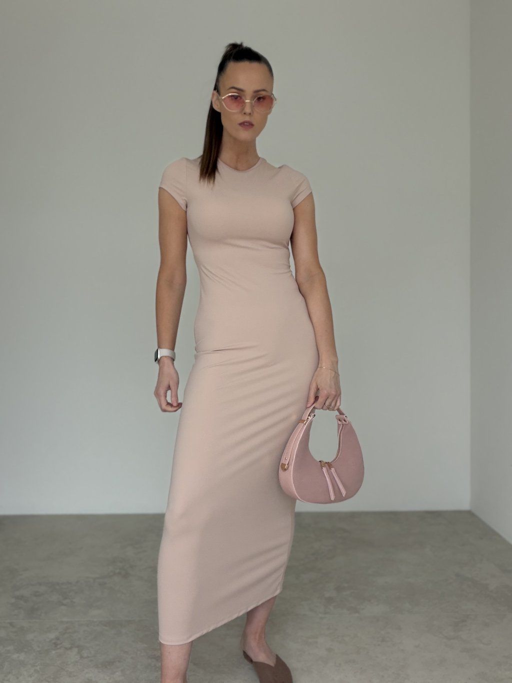 Tieto elastické šaty sú stelesnením jednoduchosti, ktorá vyzerá luxusne. Priliehavý strih krásne kopíruje postavu a vďaka pružnému materiálu sa nosia veľmi pohodlne počas celého dňa. Minimalistický dizajn s okrúhlym výstrihom a krátkymi rukávmi pôsobí čisto a elegantne, takže ich ľahko využiješ na bežné nosenie, do práce aj na večerný program. Dĺžka pod kolená vytvára ženskú siluetu a šaty sa dajú jednoducho štylizovať podľa toho, aký efekt chceš dosiahnuť – športovejší s teniskami alebo sofistikovaný s elegantnejšou obuvou a doplnkami.