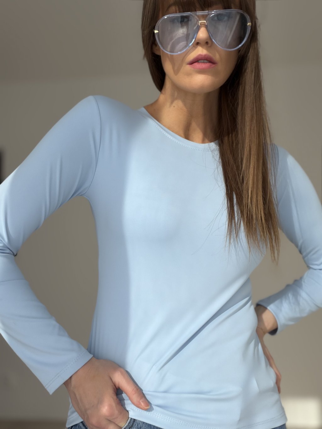 Priliehavý elastický top s dlhými rukávmi, ideálny na vrstvenie aj samostatné nosenie.