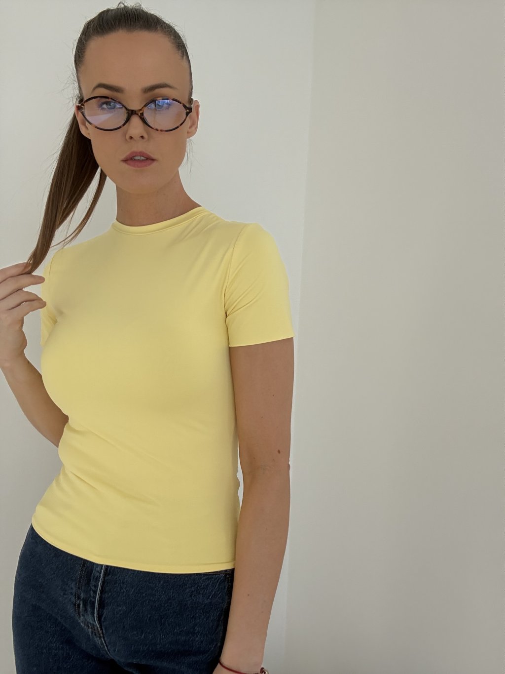 Elastický top s krátkym rukávom a priliehavým strihom, ktorý krásne zvýrazní ženské krivky. Hladký materiál príjemný na dotyk sa prispôsobí telu a zaručí maximálne pohodlie počas celého dňa. Jednoduchý minimalistický dizajn s okrúhlym výstrihom sa ľahko kombinuje do elegantných aj ležérnych outfitov. Ideálny ako základný kúsok šatníka.