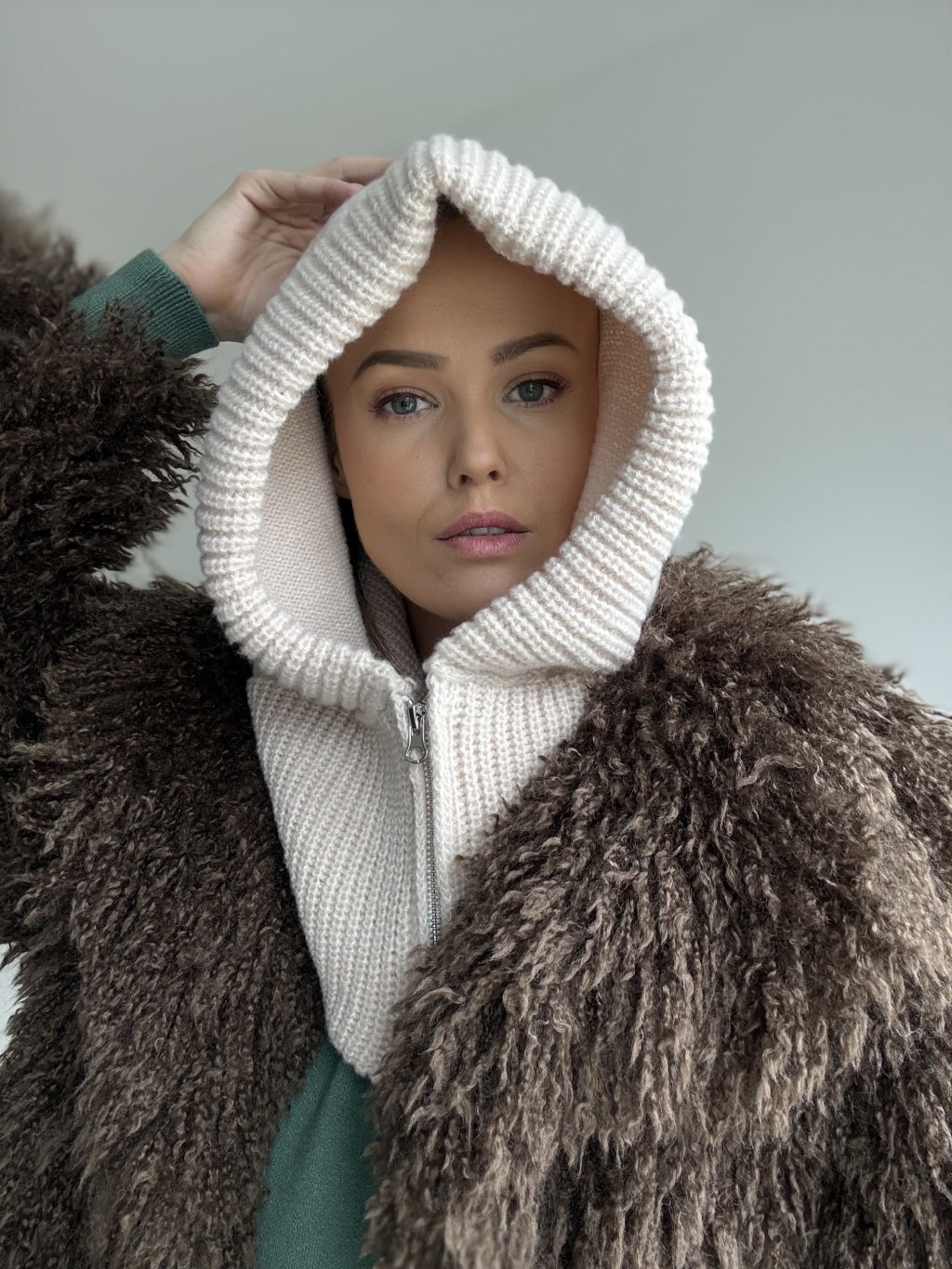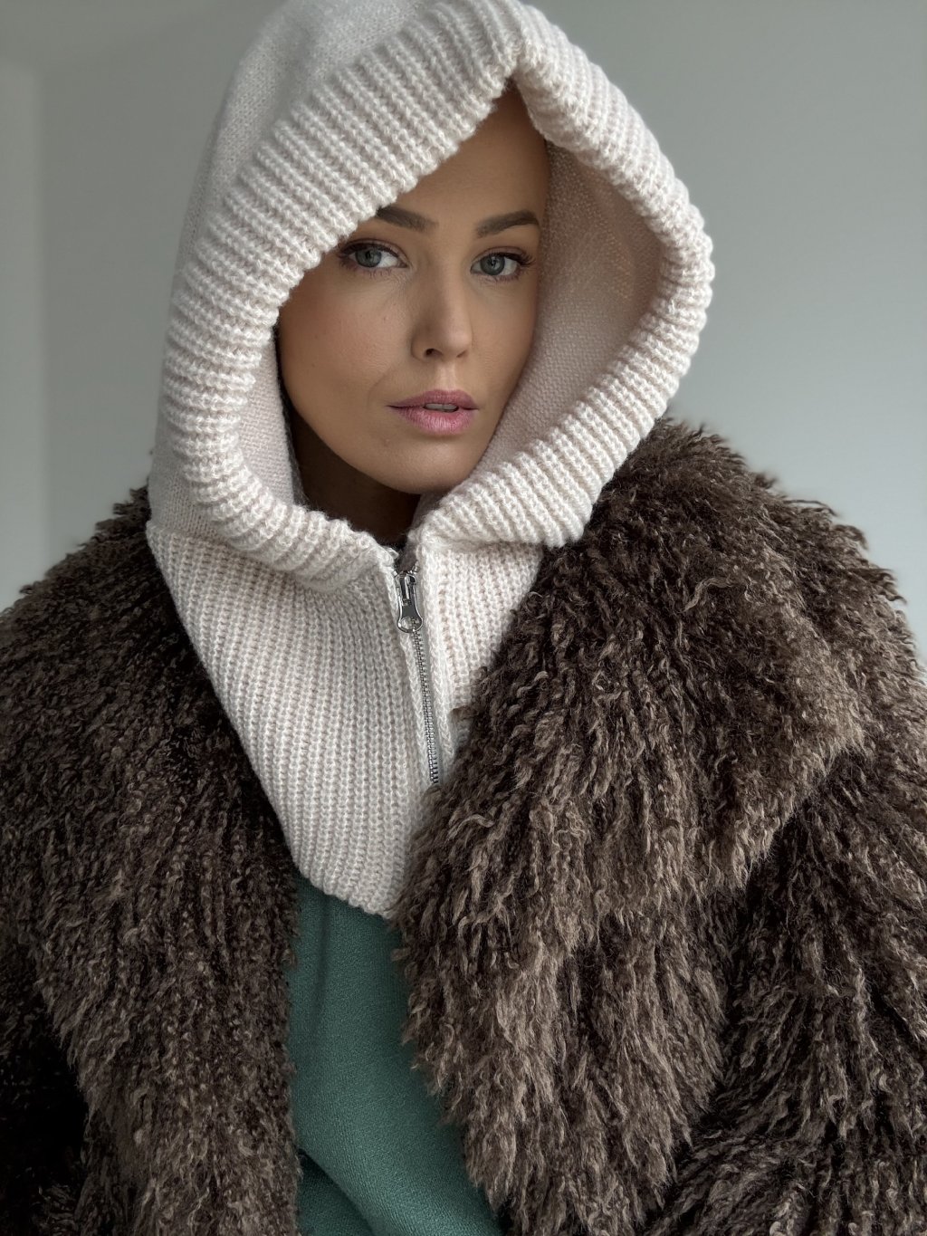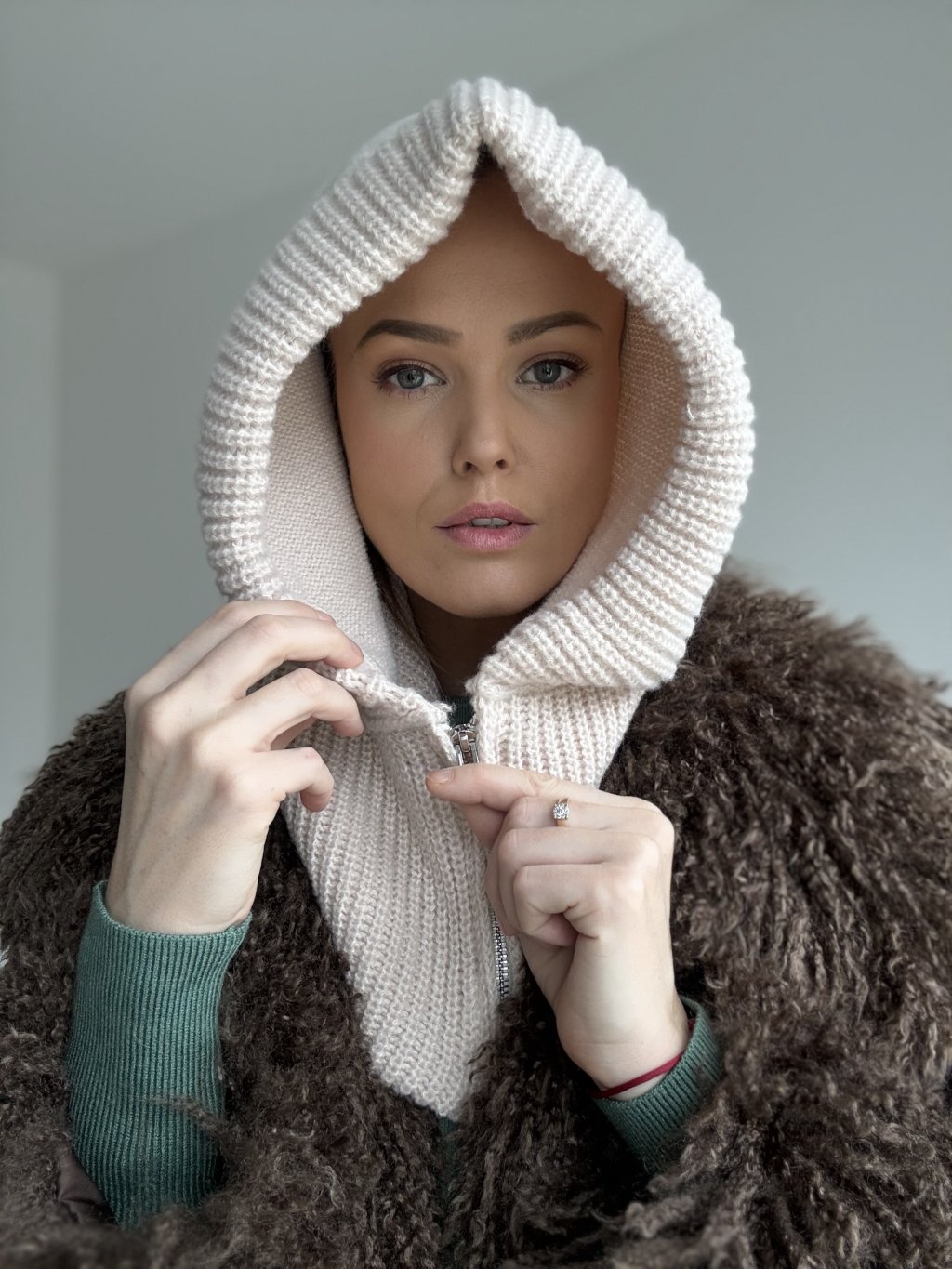 Knitted balaclava with a front zipper that keeps your neck, ears and forehead warm. The soft knit feels gentle against the skin and layers perfectly over tees, sweaters or coats. The zipper makes it easy to put on and lets you adjust ventilation around the neck to suit the weather. A stretchy face opening sits comfortably and holds its shape. One size with a snug, comfortable fit. Care: gentle wash and lay flat to dry.