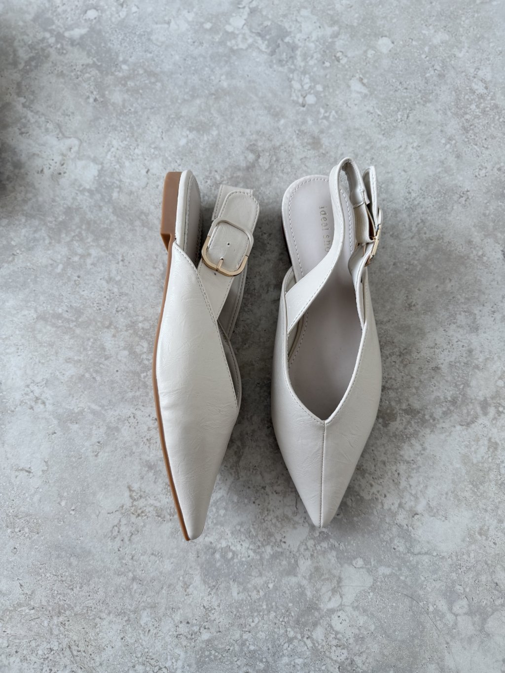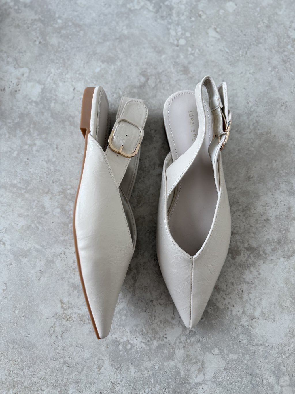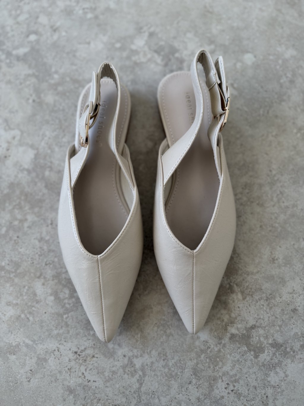 Elegant pointed-toe ballet flats with a slingback strap and adjustable buckle. Finished with a low, stable heel for comfortable everyday and dressier styling.