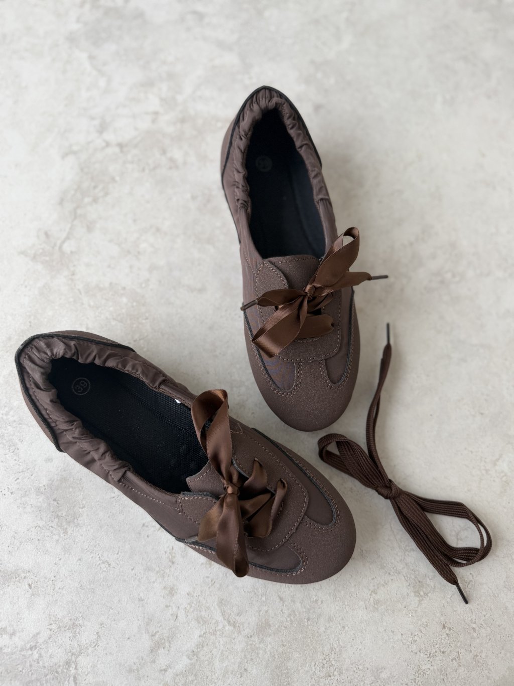 These stylish ballet flats with a subtle sporty twist are perfect for days when you want comfort without losing a polished look. The lightweight design, soft feel and elasticated edge help the shoe sit nicely on the foot. The front lace detail adds a modern touch and lets you adjust the style to match your outfit. As a practical bonus, the package includes two pairs of laces, so you can switch up the look depending on your mood or occasion. Their low profile makes them easy to pair with dresses, skirts or trousers—ideal for everyday wear, travel and city days.