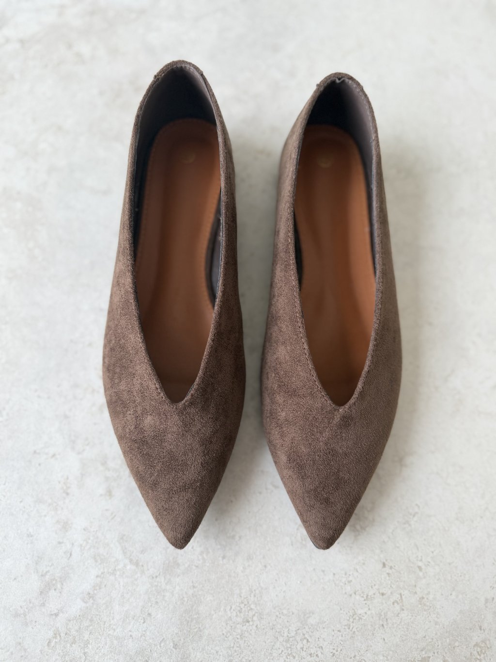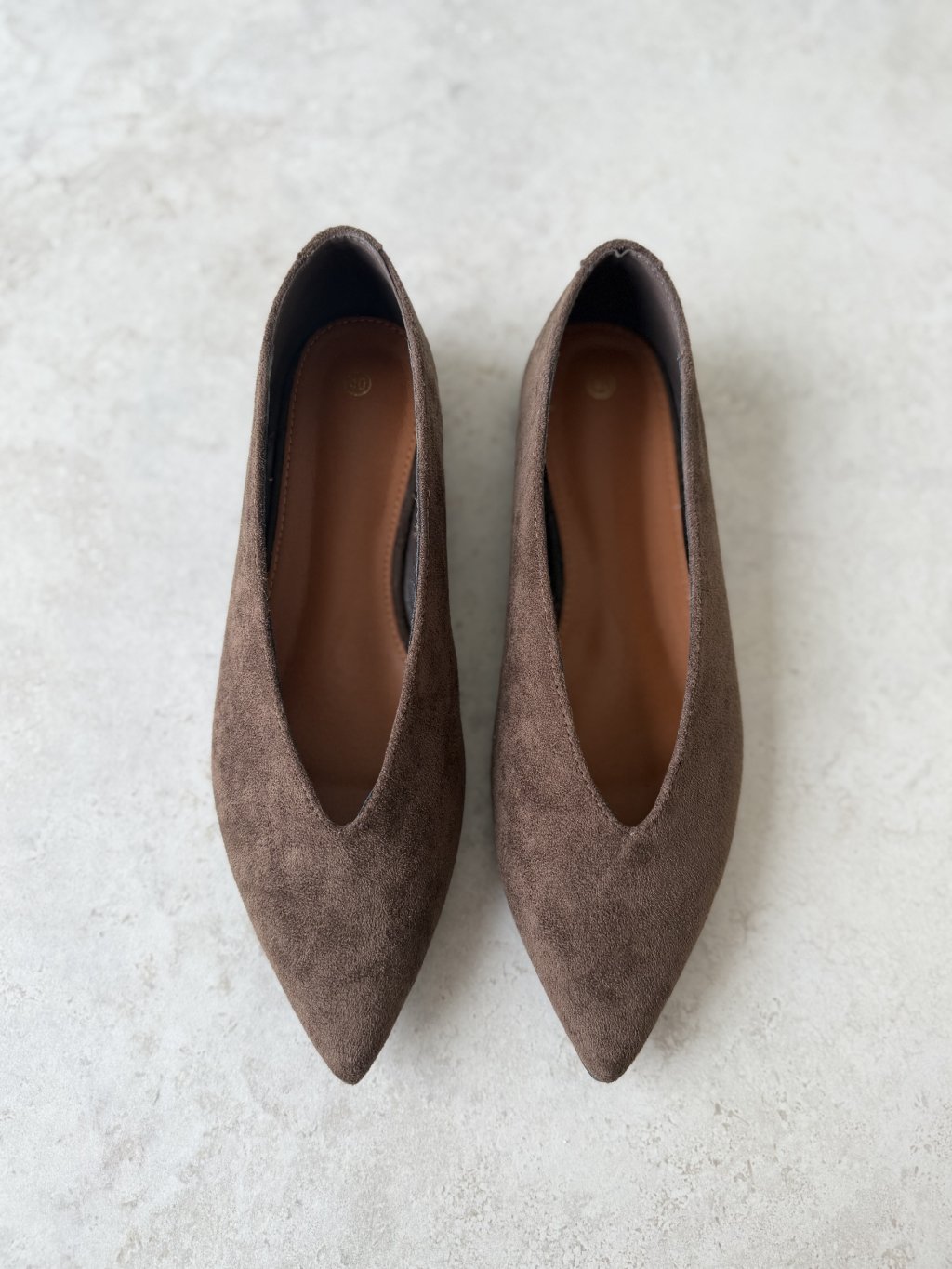 Pointed-toe ballet flats with a low, stable heel. A timeless, elegant style for everyday wear and work.