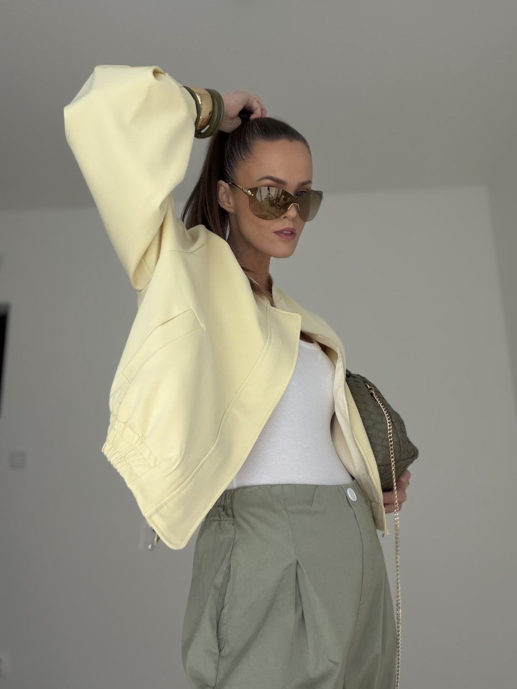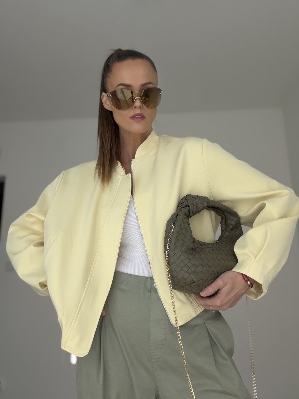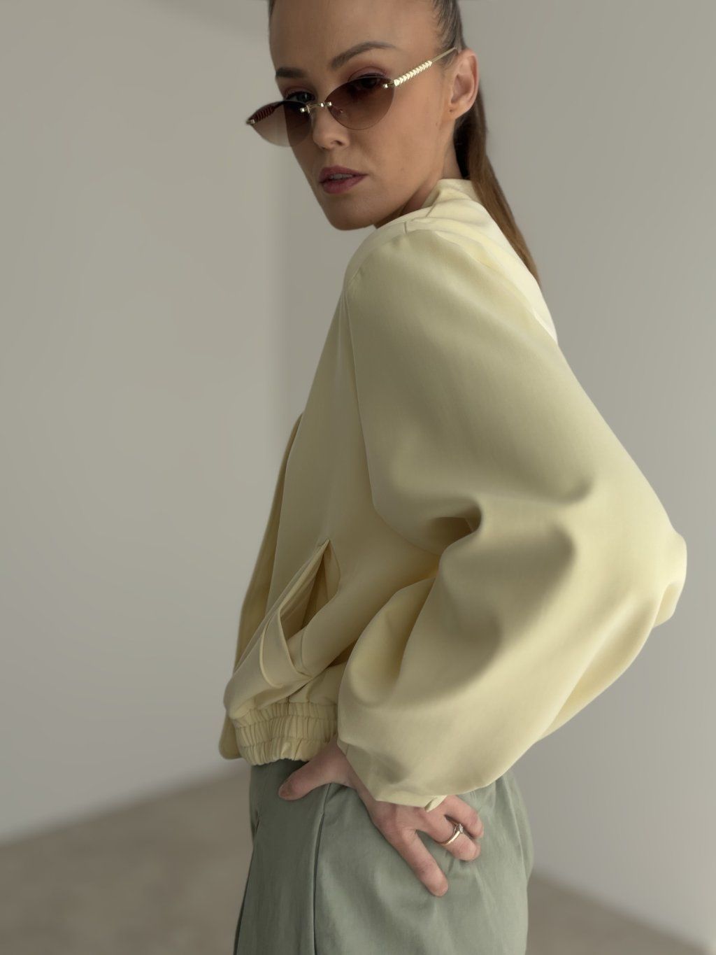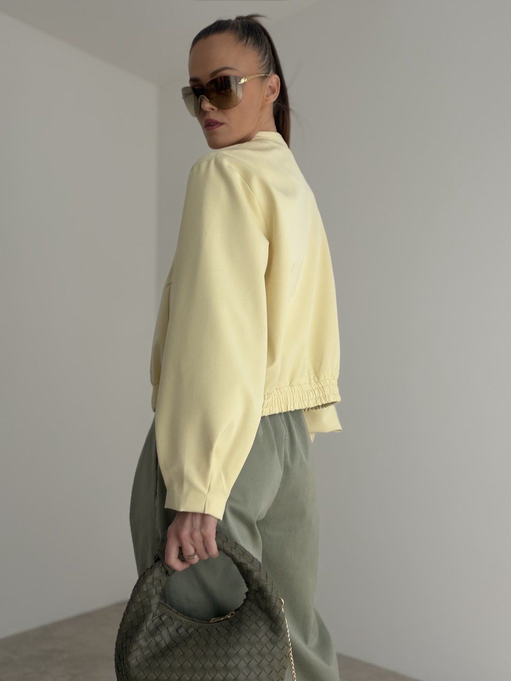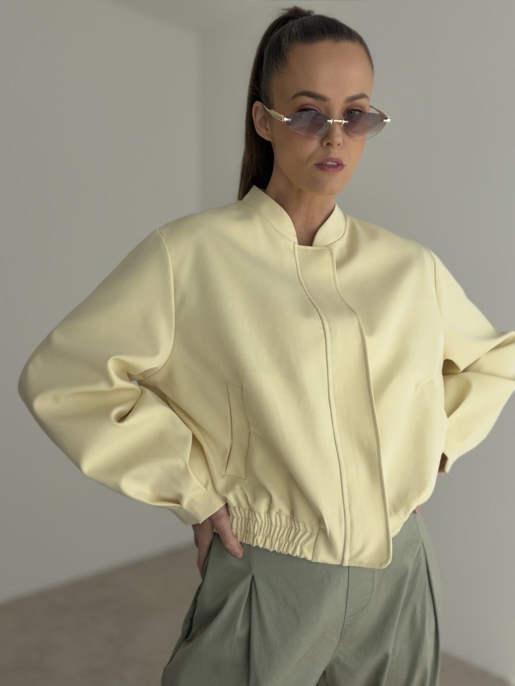 This bomber jacket is a stylish piece that combines a modern look, comfort, and versatile wear. It has a relaxed fit that feels casual while still looking polished and feminine. Thanks to its clean design, it is easy to pair with different outfits and is a perfect choice for women who love simple yet distinctive pieces in their everyday wardrobe.