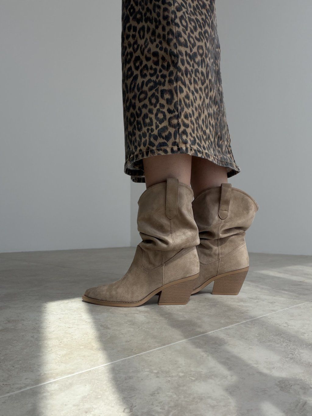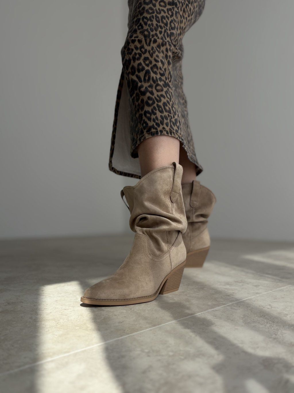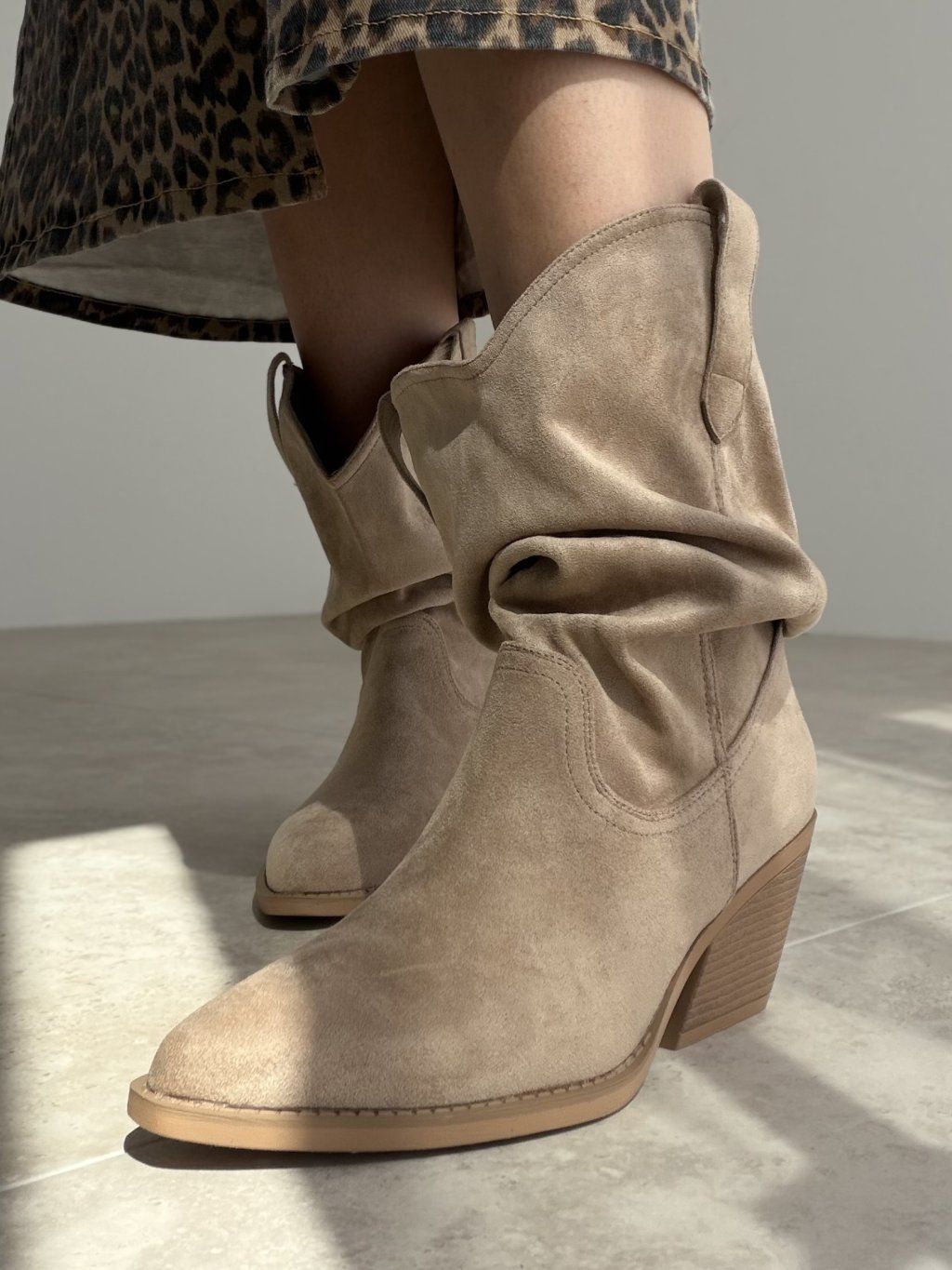 Stylish western-inspired boots that add a modern and confident touch to any outfit. They feature a comfortable wider shaft, a softly slouched effect, practical side pull tabs and a stable heel, giving them a feminine look while remaining comfortable to wear. They pair beautifully with dresses, skirts and trousers, making them a versatile piece for casual and statement outfits.