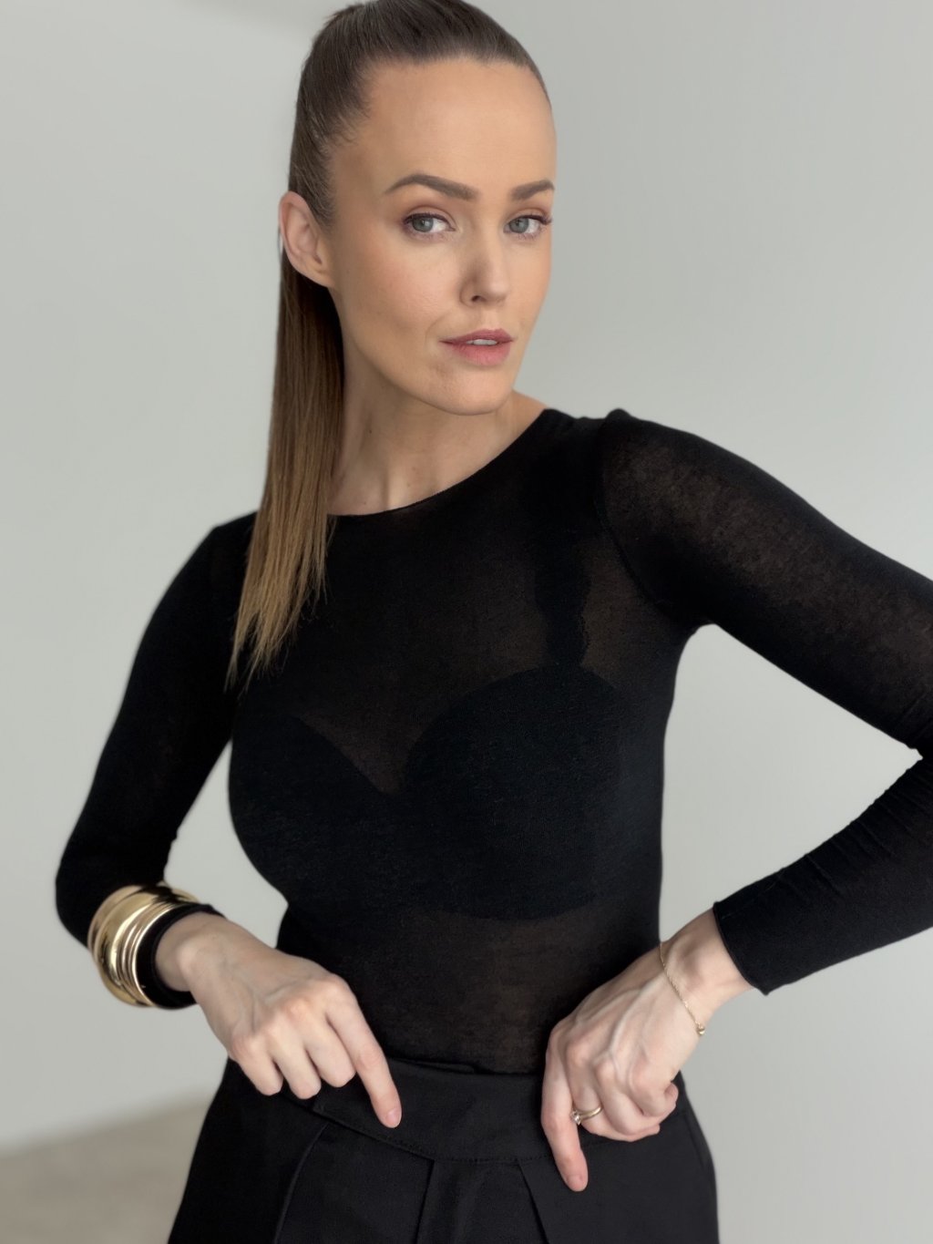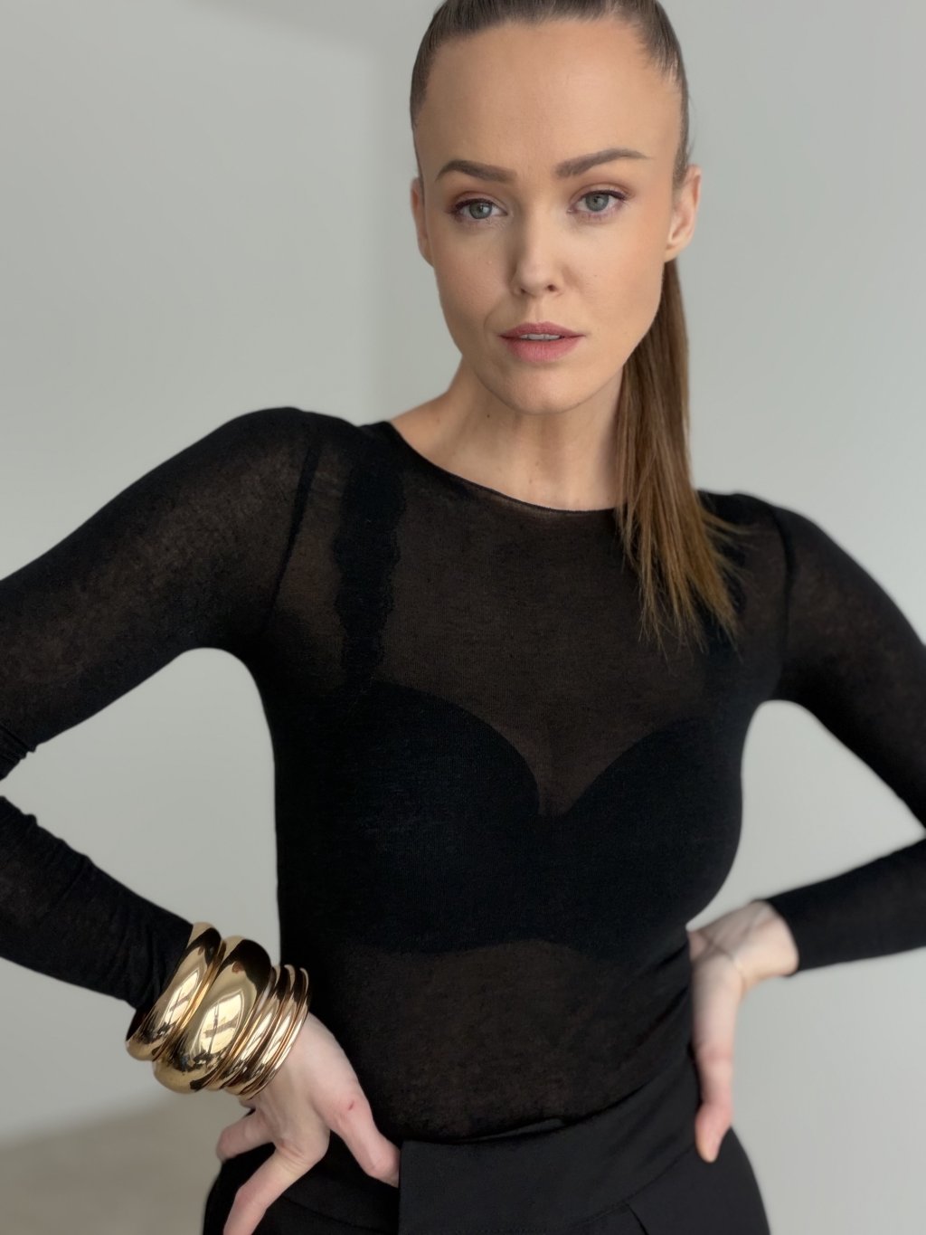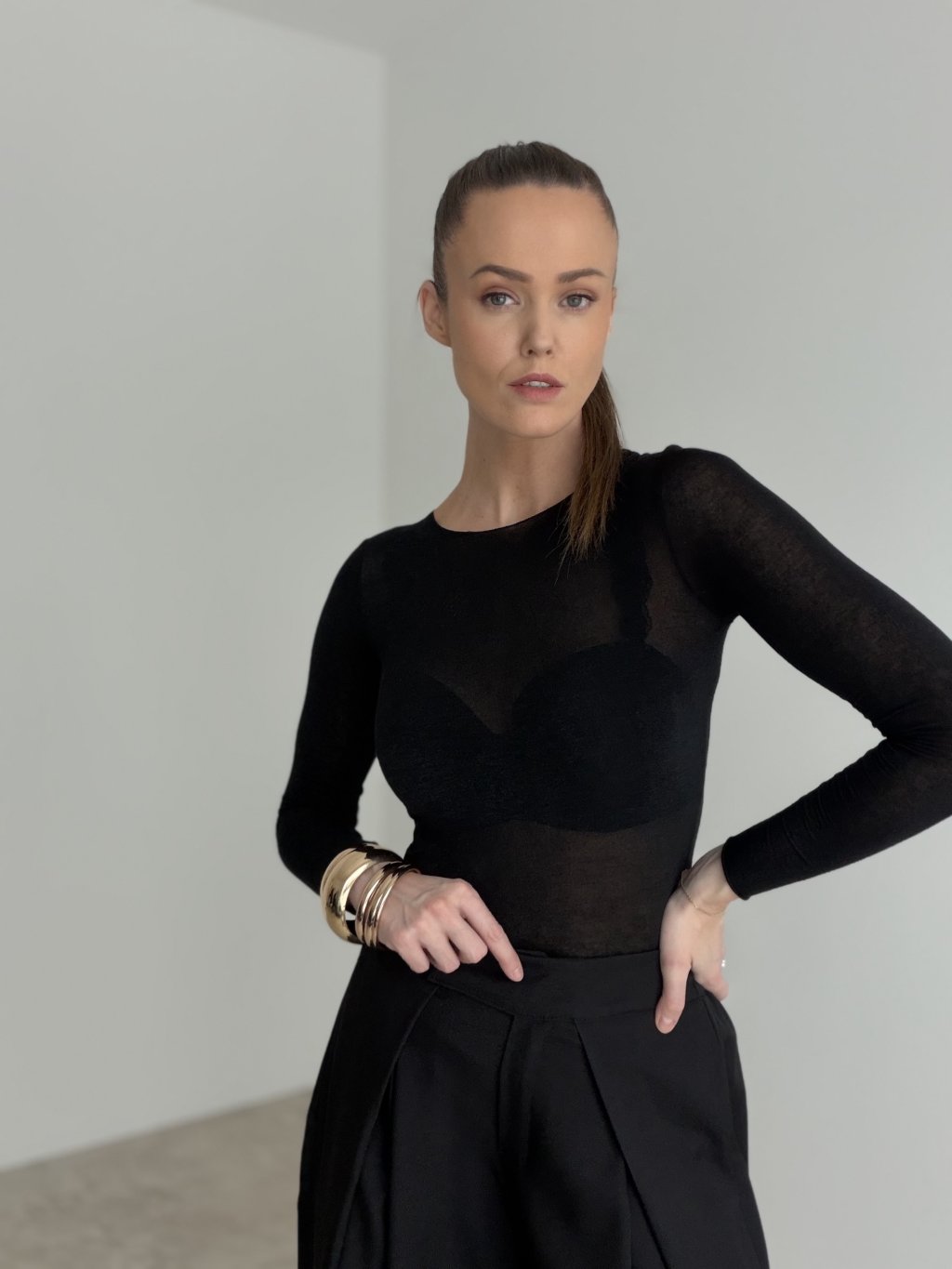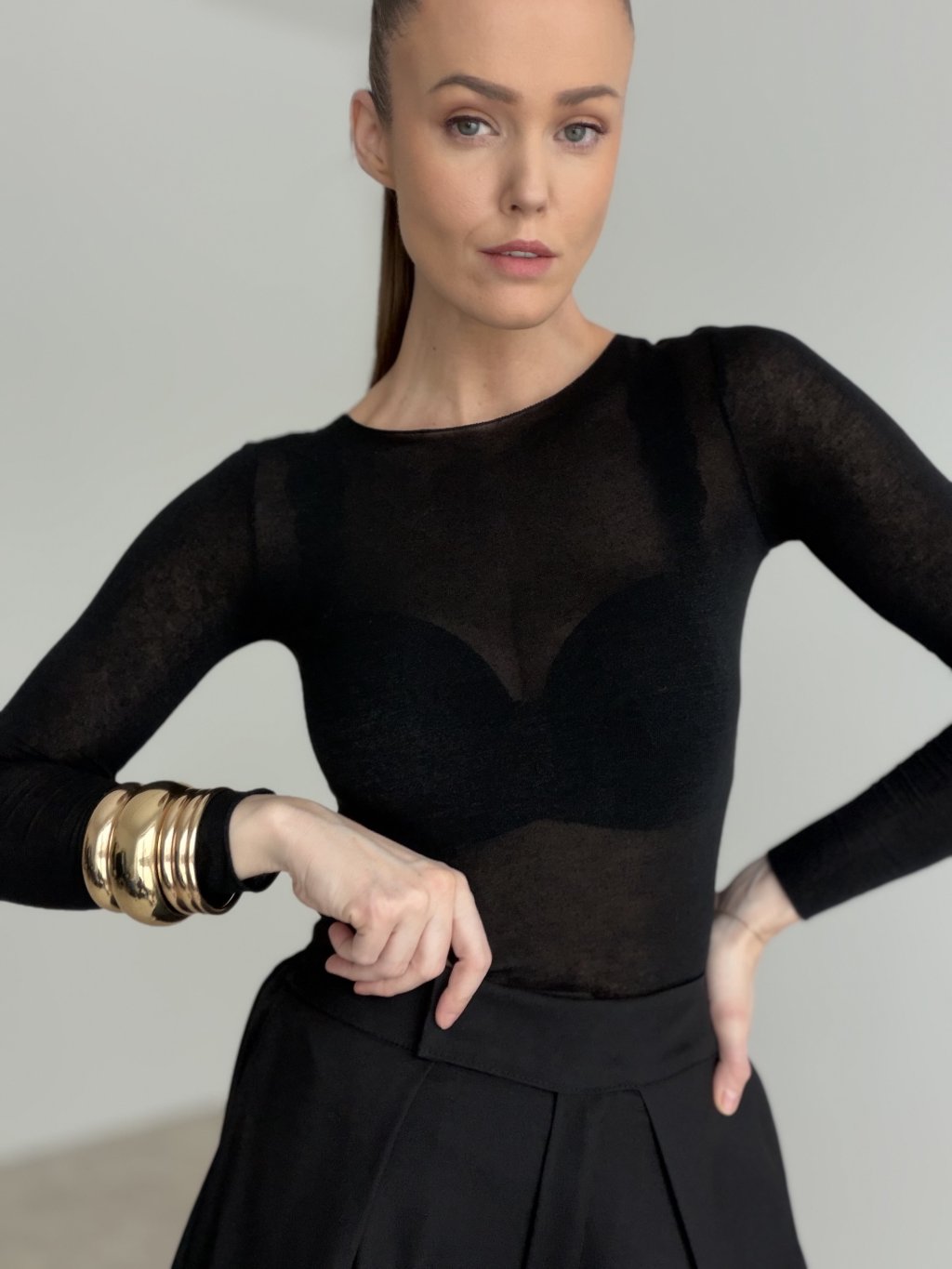 A soft cashmere top with long sleeves and a refined bateau neckline. The lightweight, silky knit feels gentle on the skin, drapes beautifully, and layers perfectly under blazers or outerwear. With its clean, minimalist cut, it’s a timeless piece that pairs effortlessly with skirts or trousers for both everyday and dressed-up looks.