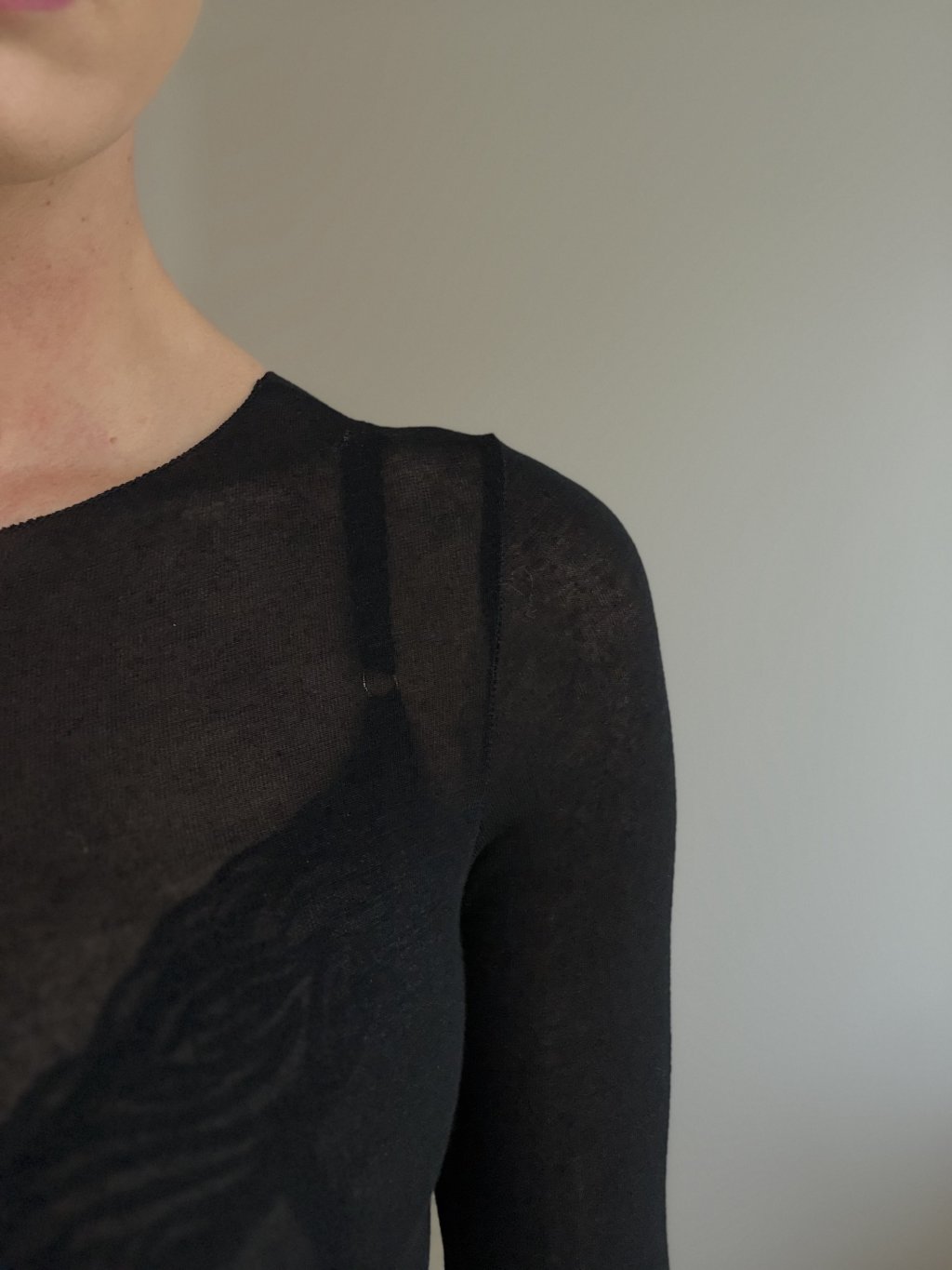 Soft cashmere top with a bateau neckline and long sleeves—lightweight, comfortable, and timeless.