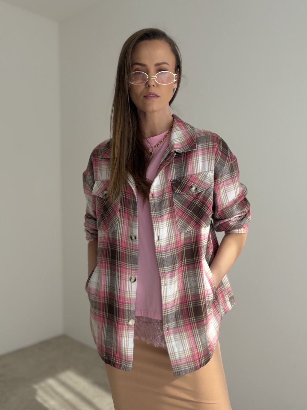 This checked shirt is a stylish and timeless piece that gives any outfit a relaxed yet polished look. It features a loose fit, a classic collar and button fastening, making it easy to wear both on its own and as a layering piece. The front pockets and slightly longer cut add a modern touch and make this shirt a versatile option for everyday styling.