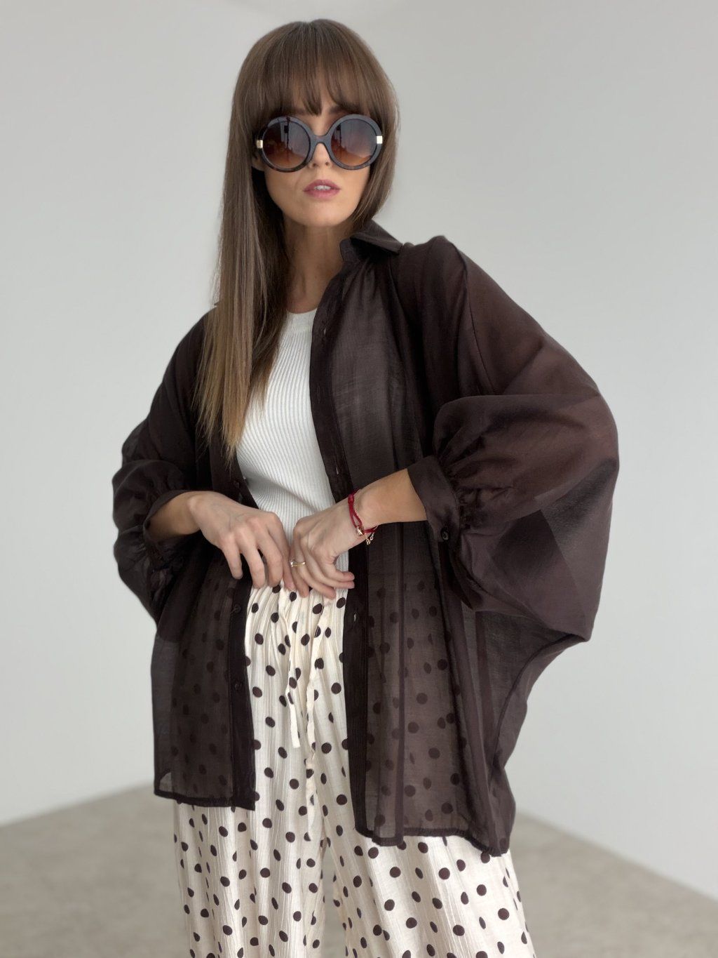 It pairs beautifully with a top, bodysuit, trousers, or a skirt, and can be worn open as a light layering piece as well. It is perfect for everyday wear, city styling, meetings, or any moment when you want to enhance your outfit with something delicate yet eye-catching. Thanks to its fabric and cut, it feels modern and brings lightness and elegance to your overall look.