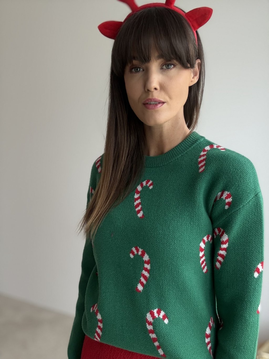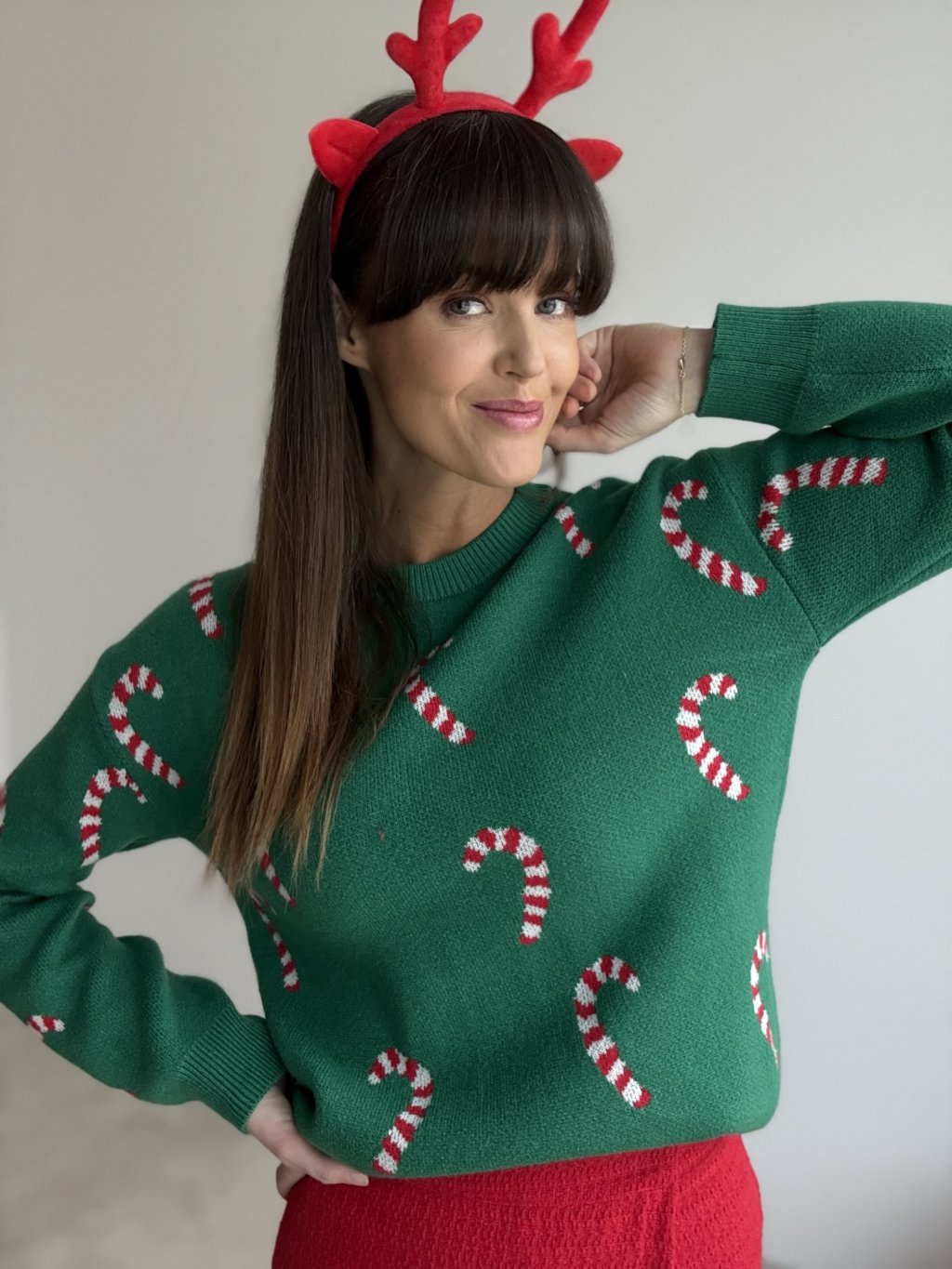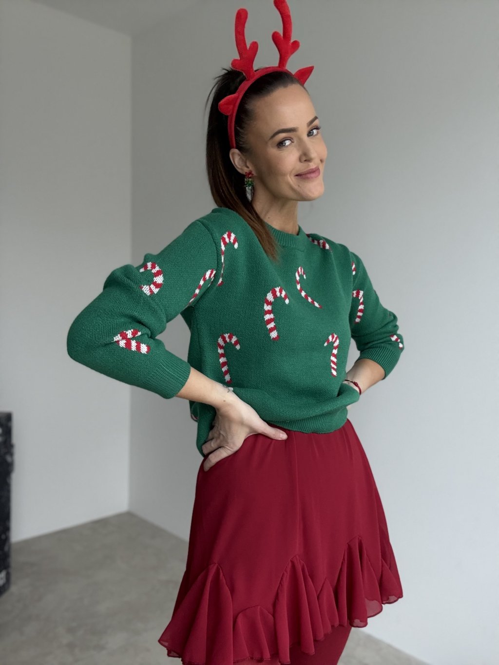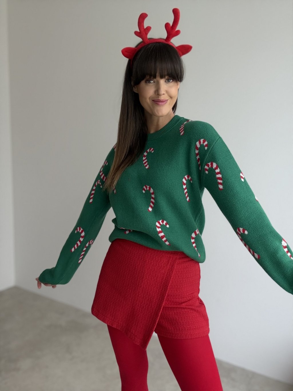 • Style it with slim trousers or leggings to let the festive pattern stand out.