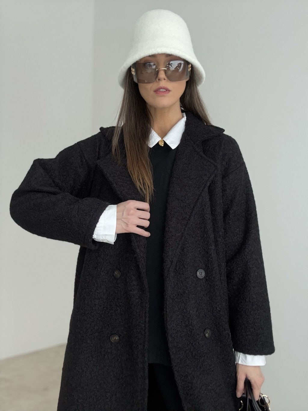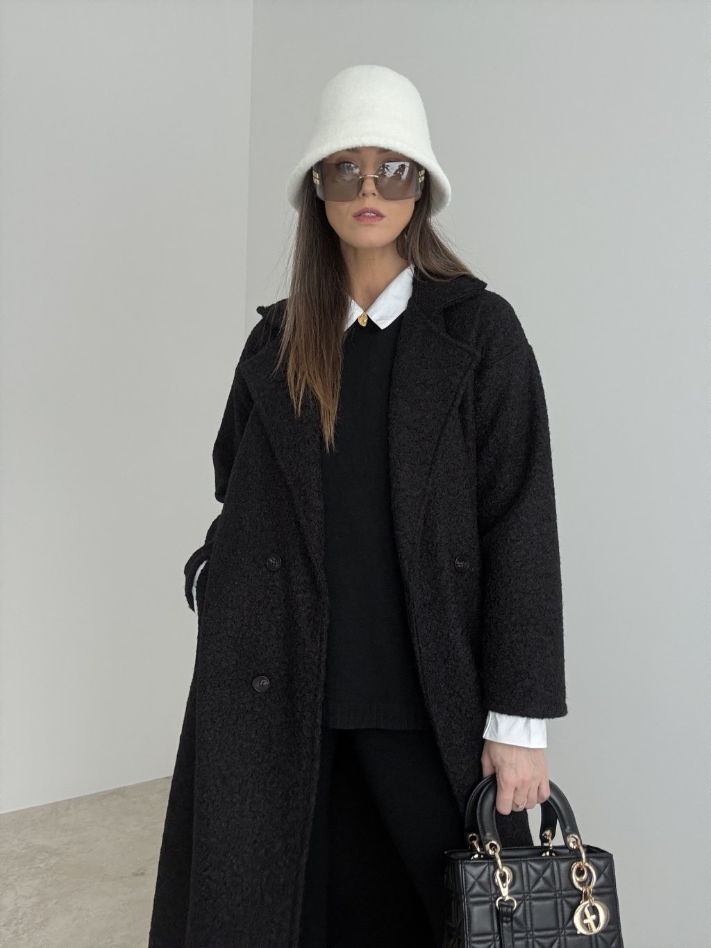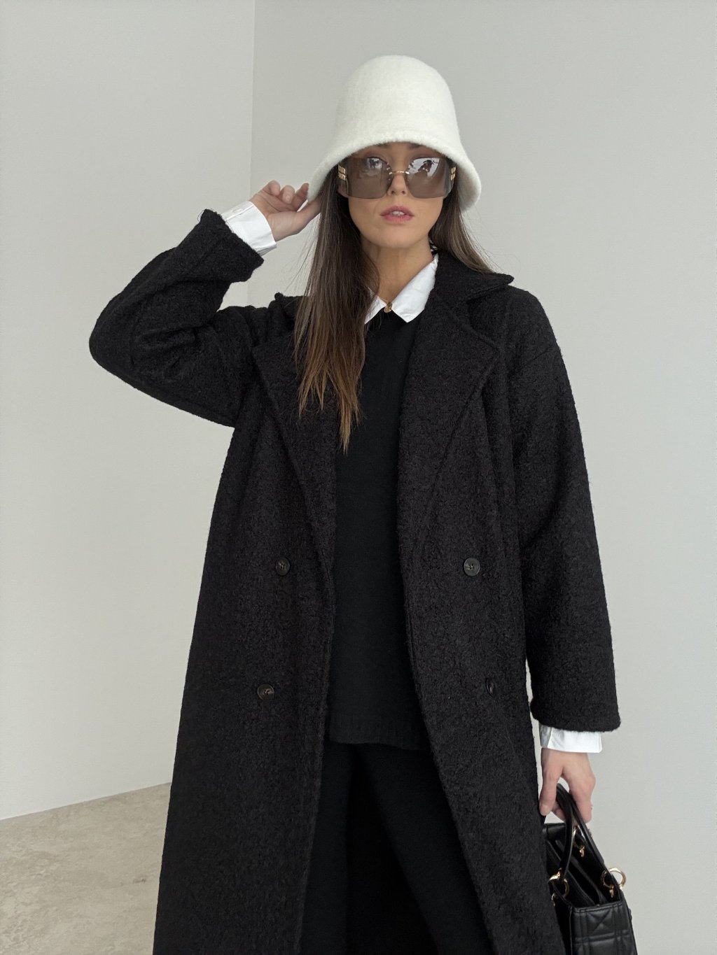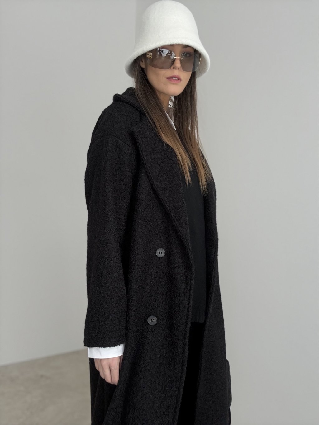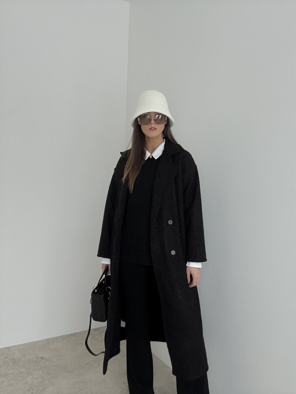 Long, relaxed-fit coat that combines elegance with everyday winter comfort. The soft, textured fabric feels cozy, keeps its shape nicely and provides pleasant warmth on colder days. It features a classic notched lapel, front button fastening and practical side pockets. The coat is unlined, which makes it lighter, easy to layer over knitwear, dresses or a blazer, and perfect for creating effortless layered looks. Thanks to its slightly oversized silhouette, it layers beautifully and creates a modern, clean winter style for both casual and more dressed-up occasions.