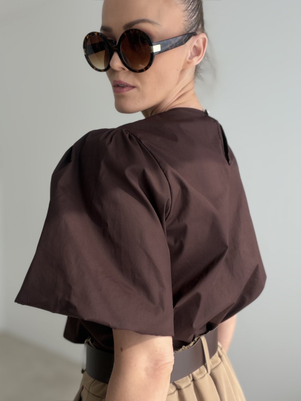 This is a piece that works beautifully in both elegant and smart casual looks. It pairs perfectly with high-waisted trousers, skirts, or simple denim, creating an outfit that feels feminine, modern, and timeless. It is an ideal choice for days when you want to look polished while still keeping your style original and detail-focused.