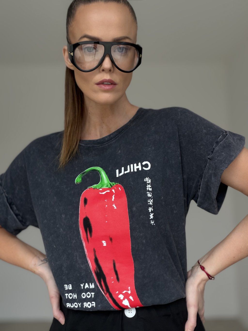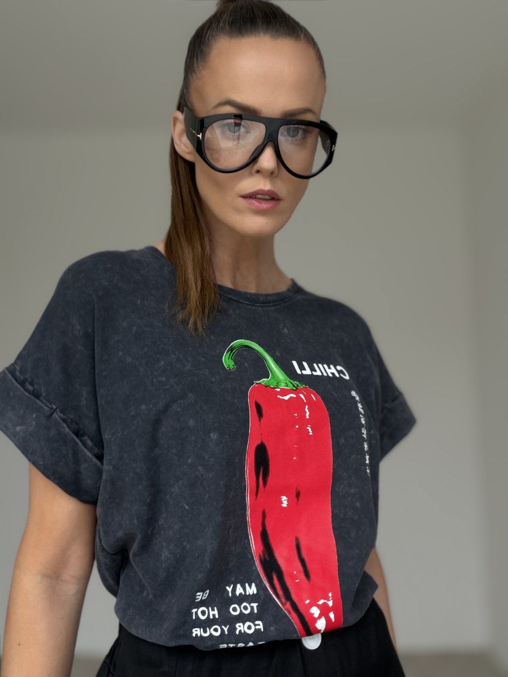This cotton T-shirt is a great choice for women who love comfortable, stylish, and eye-catching pieces for their everyday wardrobe. The pleasant fabric ensures all-day comfort, while the looser fit gives the design a modern and relaxed look. The front print creates an original detail that instantly draws attention and gives the outfit a distinctive character.