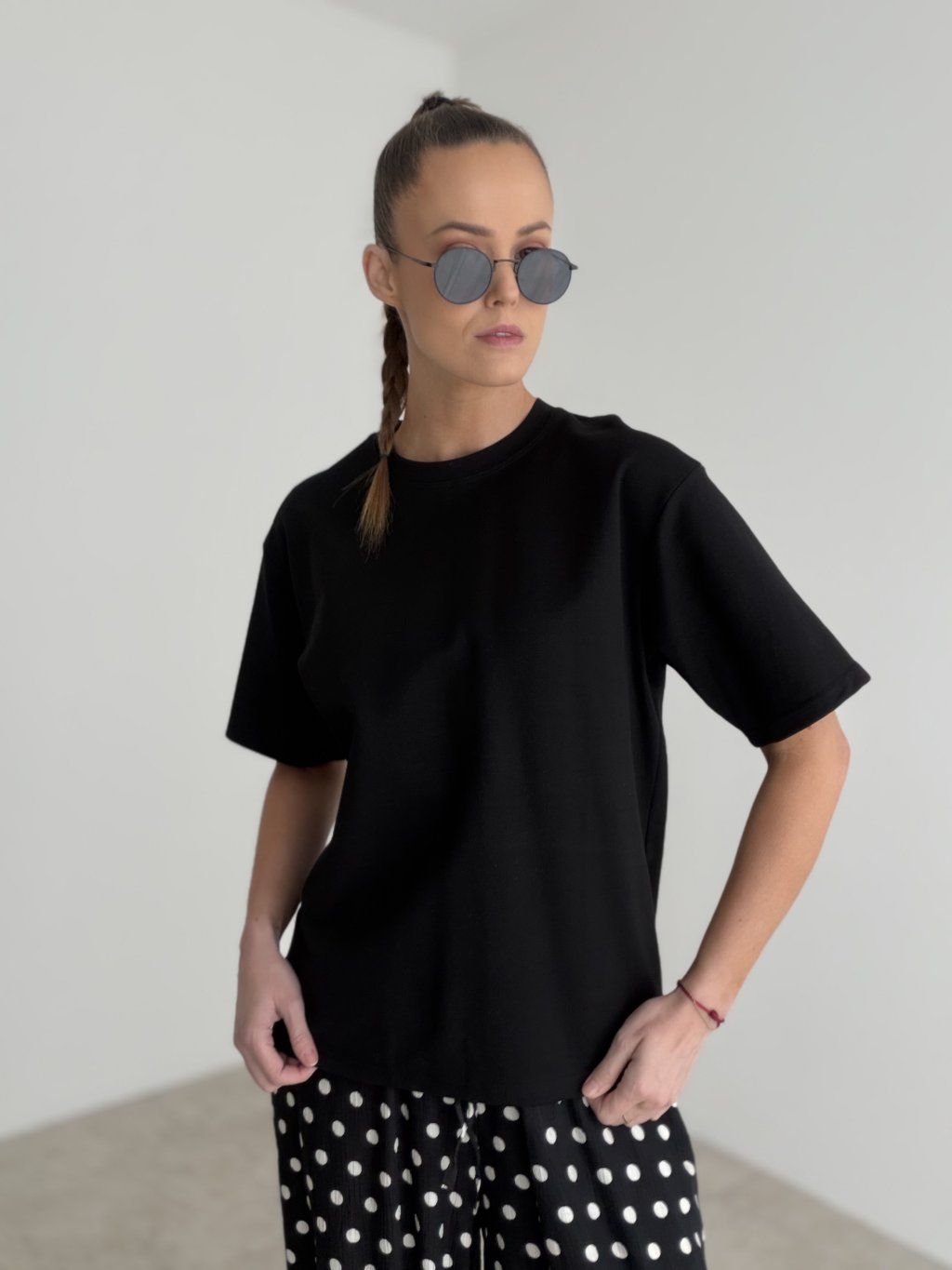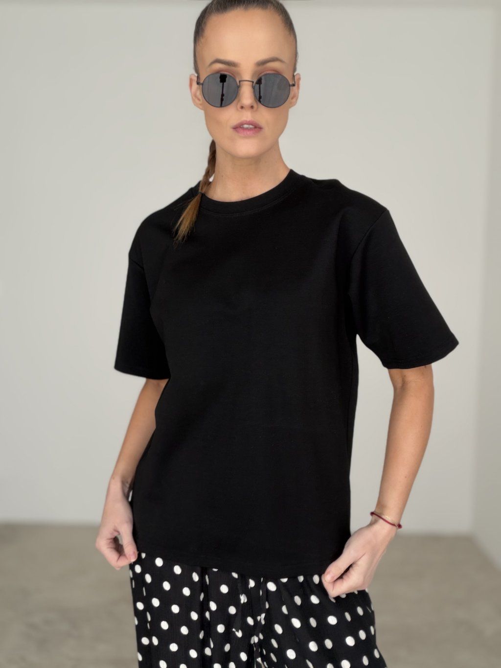 A cotton T-shirt with a clean, timeless design that works as an everyday wardrobe essential. It features a relaxed fit with a subtly dropped shoulder line and comfortable sleeves, giving it a modern yet easy-to-wear silhouette. The classic crew neckline sits neatly and pairs effortlessly with jeans, trousers, or skirts. Perfect for daily wear, travel, and layering under a blazer or jacket when you want a polished look without any effort.