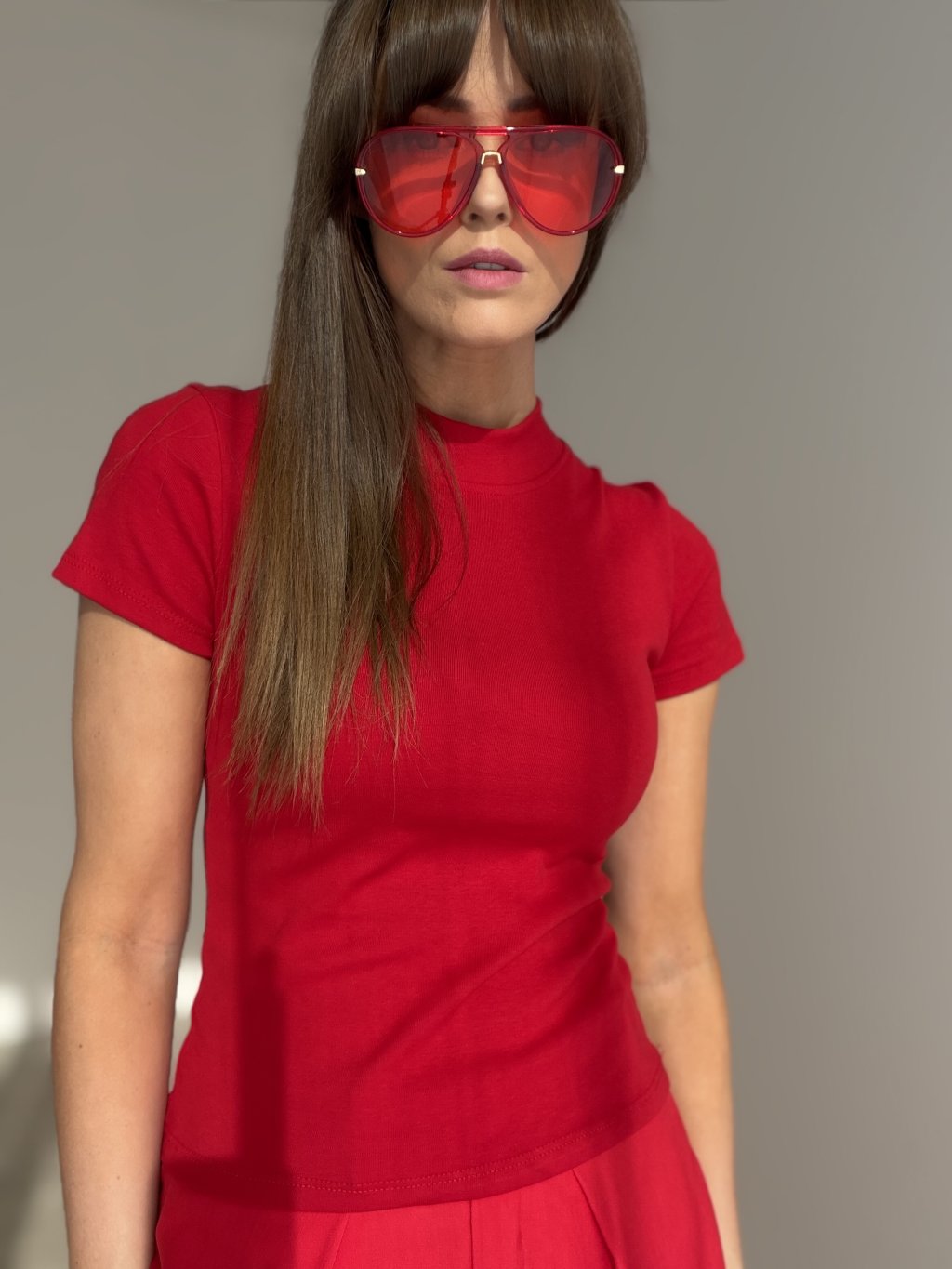 This cotton top is a timeless wardrobe staple defined by a clean silhouette and refined finishing. The fitted shape flatters the figure while staying comfortable for all-day wear. Short sleeves and a higher crew neckline create a polished, minimalist look that pairs effortlessly with both casual and elevated outfits. The fabric feels soft against the skin and works perfectly for layering under blazers, shirts, or jackets, while also looking great on its own.