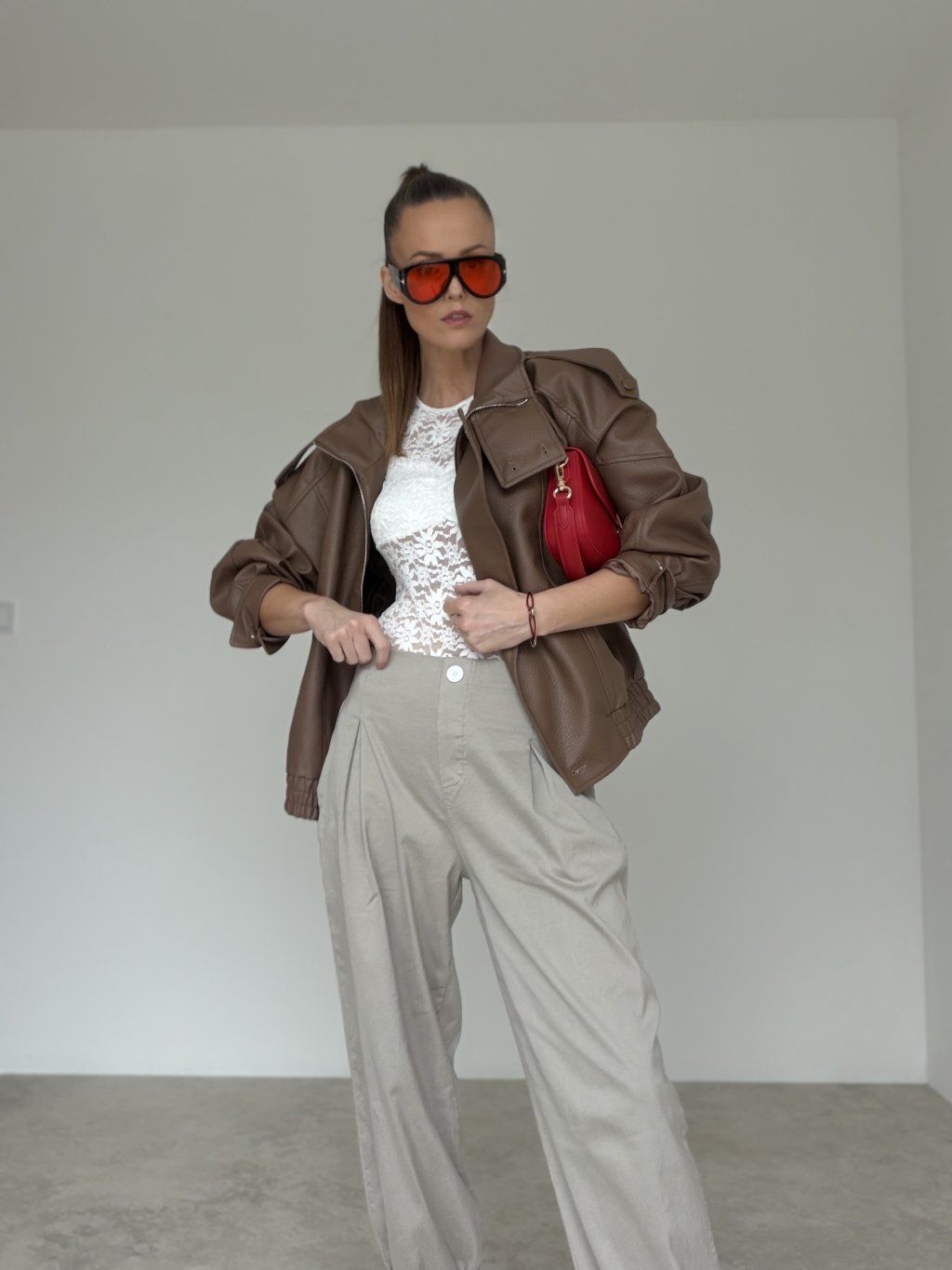 These trousers are perfect for everyday wear as well as for creating an interesting city-inspired outfit. You can style them with a simple T-shirt, shirt, top, or a lightweight blazer. Thanks to their cut, they feel relaxed yet still look very modern, making them a versatile wardrobe piece you will reach for again and again.