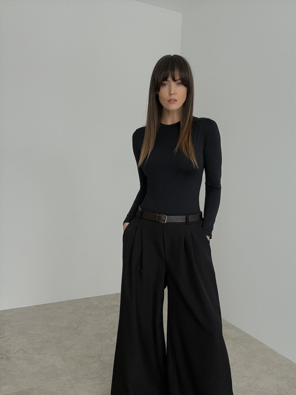 This elastic long-sleeve bodysuit is a versatile piece that perfectly hugs the figure and enhances the silhouette. Made from a soft, stretchy fabric, it offers all-day comfort and ease of movement. The minimalist design makes it easy to style with skirts, trousers, or jeans, becoming a wardrobe essential. Suitable for everyday wear as well as more elegant occasions.
