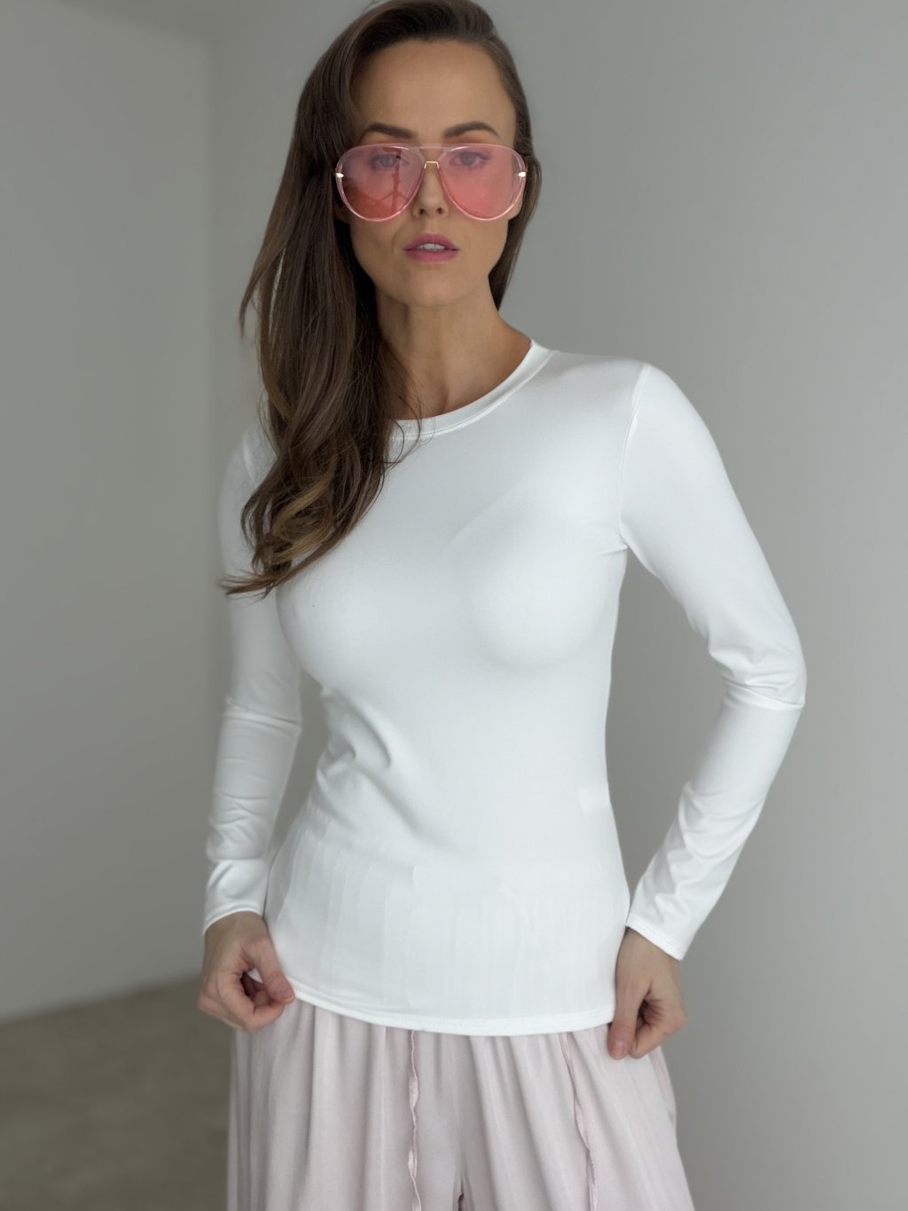 An elastic long-sleeve top with a smooth finish that perfectly adapts to the body and highlights the silhouette. The soft, stretchy, and breathable fabric ensures maximum comfort throughout the day. Ideal for wearing alone or as a base layer under a blazer, sweater, or vest.