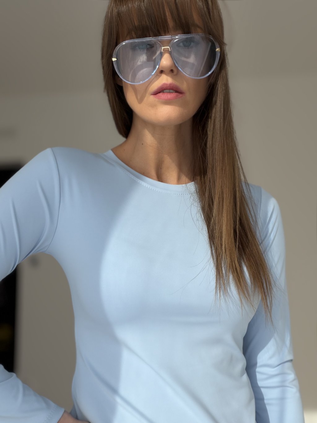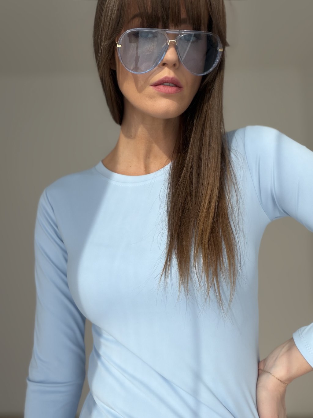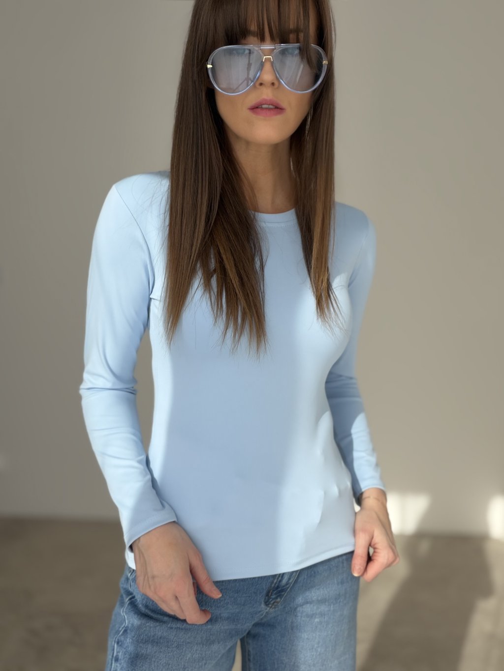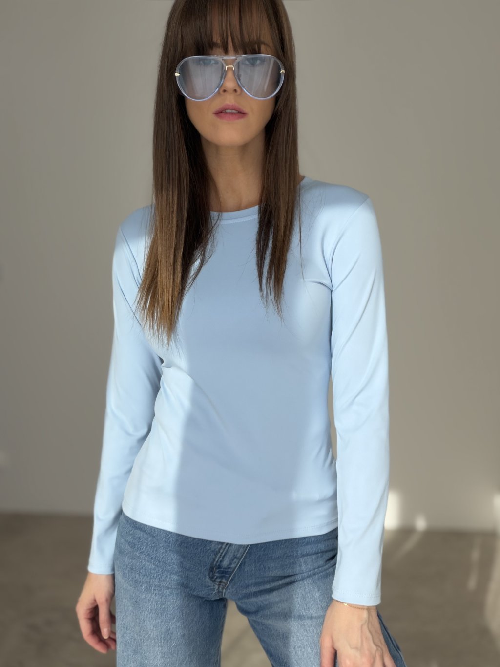 An elastic long-sleeve top with a smooth finish that perfectly adapts to the body and highlights the silhouette. The soft, stretchy, and breathable fabric ensures maximum comfort throughout the day. Ideal for wearing alone or as a base layer under a blazer, sweater, or vest.