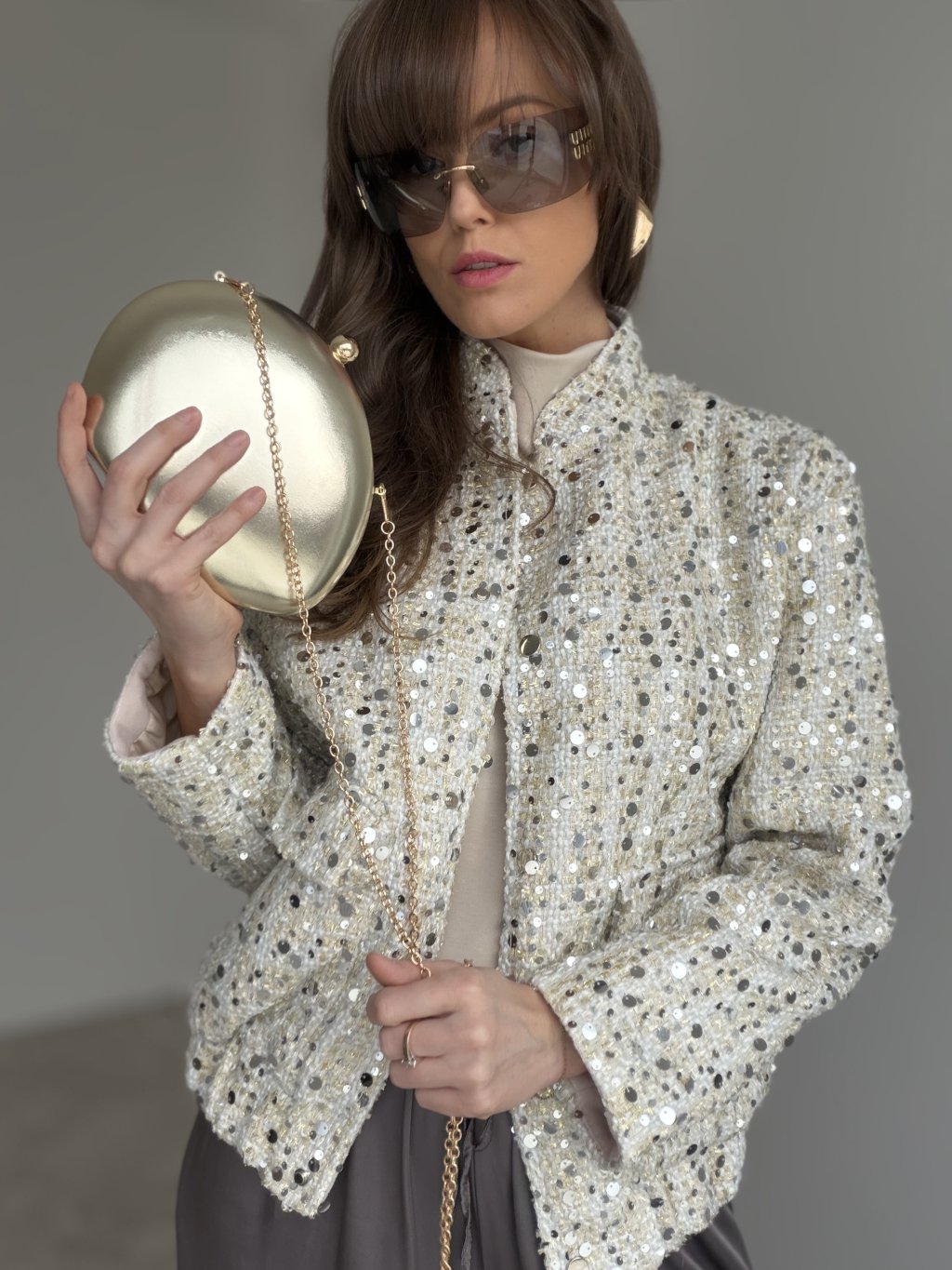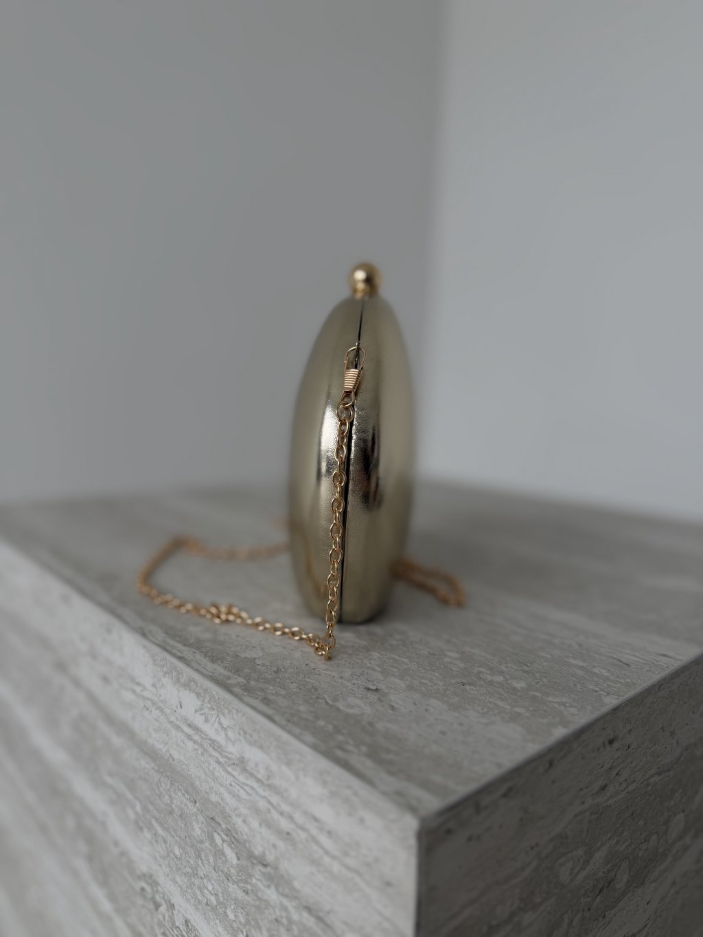 This evening bag is a statement accessory for special occasions, designed to elevate your look with a polished, luxurious feel. The structured hard-shell shape keeps its form beautifully while helping protect your essentials. A sleek metallic finish and a refined top clasp create a jewelry-like detail that pairs effortlessly with both minimalist outfits and more styled looks.