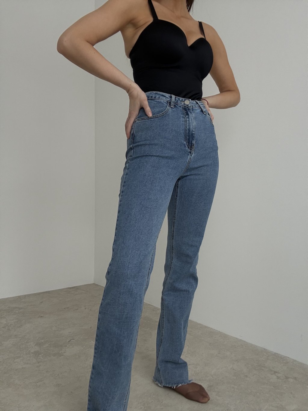 These extra long jeans with a high waist offer both elegance and comfort. The straight cut elongates the silhouette and creates a slimming effect, giving the outfit a modern and feminine touch. Made from soft yet durable denim, they adapt to the body while maintaining their shape. Perfect to pair with tops, blouses, or oversized sweaters, they are an essential piece for everyday wear and stylish occasions.