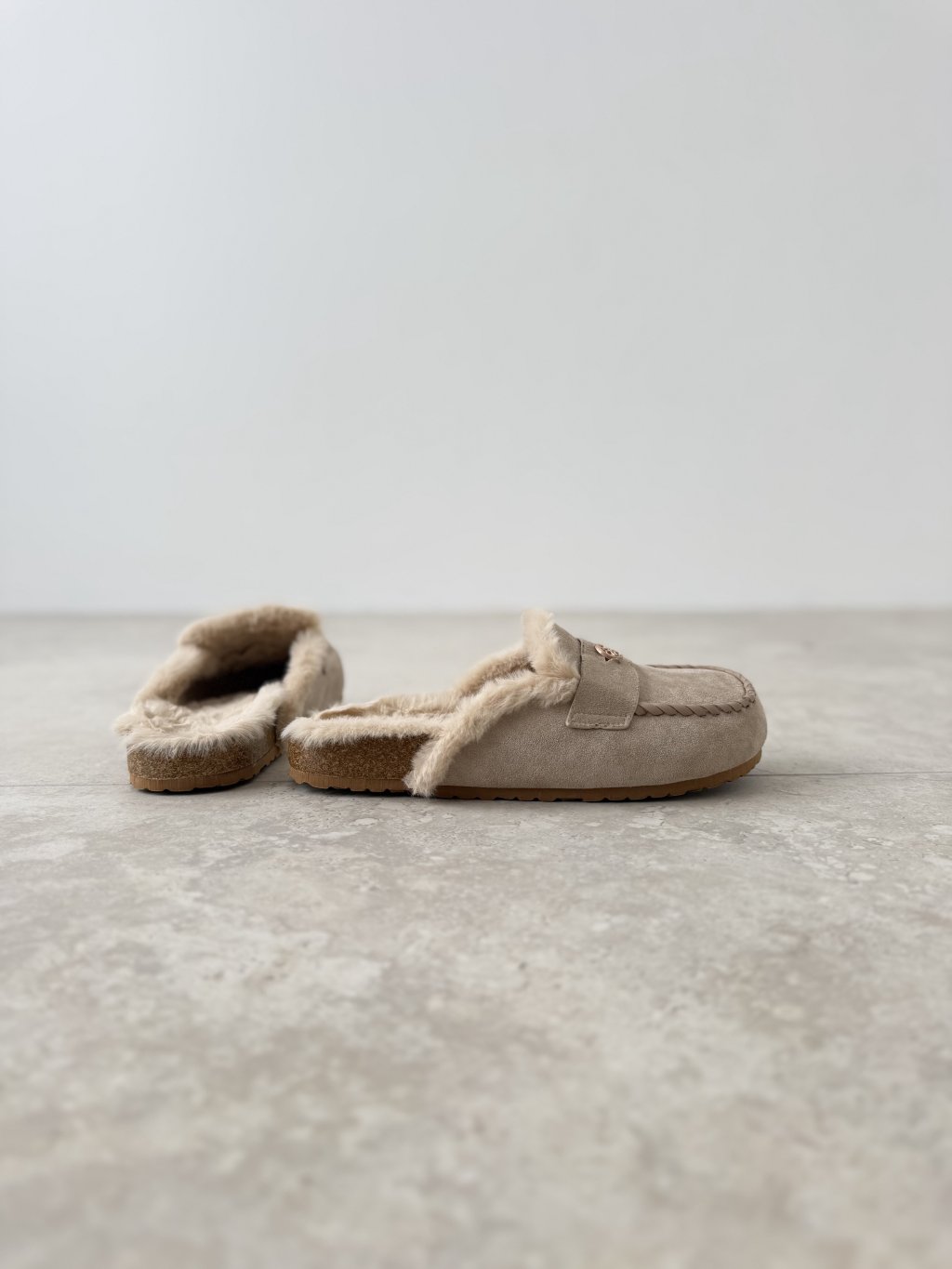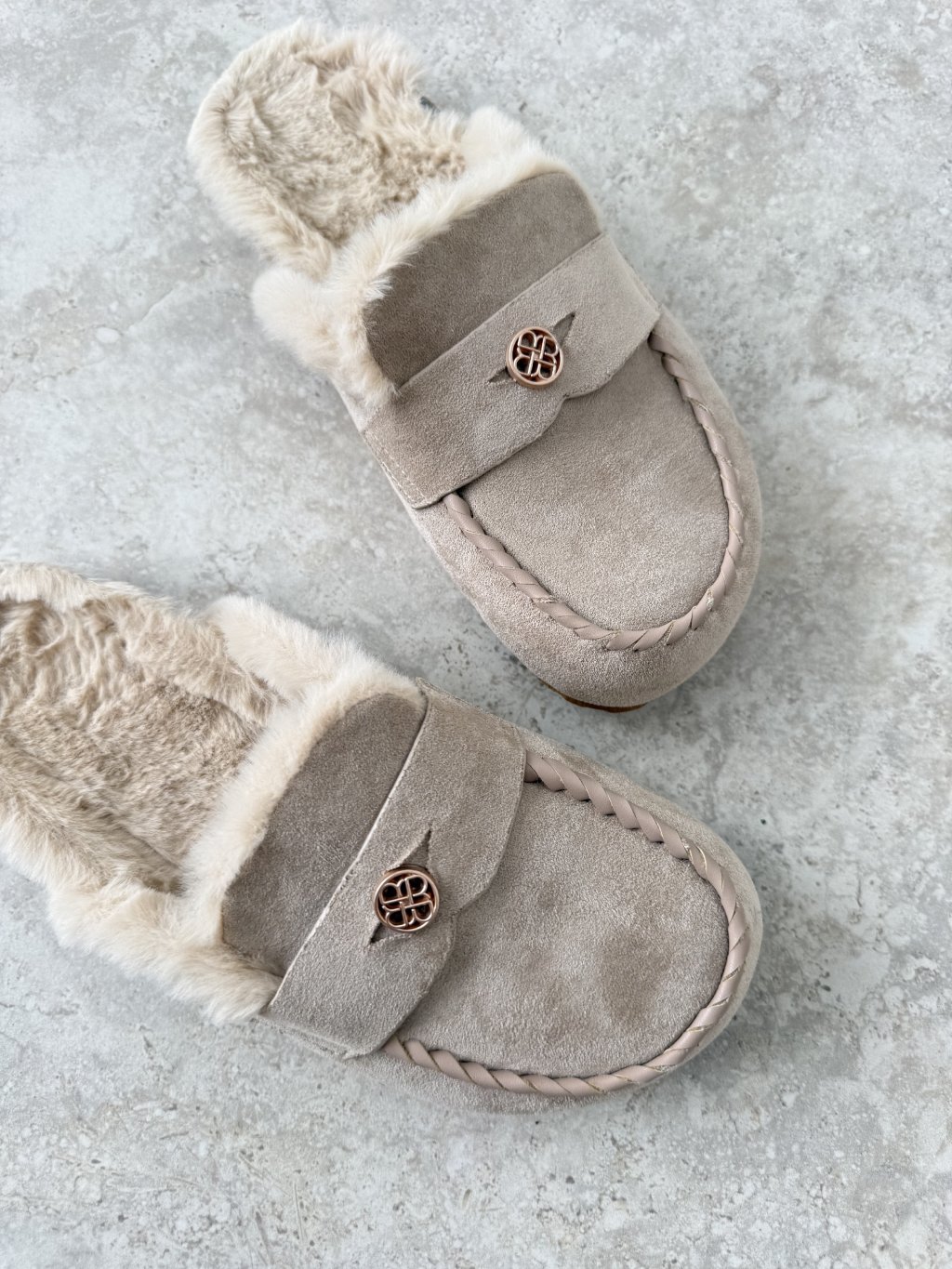 Soft, warm slippers with a plush lining that turn everyday comfort into something a little more special. The upper looks refined, finished with neat stitching and a subtle decorative detail for a polished touch. The cosy inner lining feels gentle against the skin and helps keep your feet warm, making them perfect for colder days at home, at a cabin, or after a shower or spa. Easy to slip on, comfortable in shape, and supported by a stable sole that works well on harder floors. For this footwear, we recommend choosing one size smaller than you usually wear.