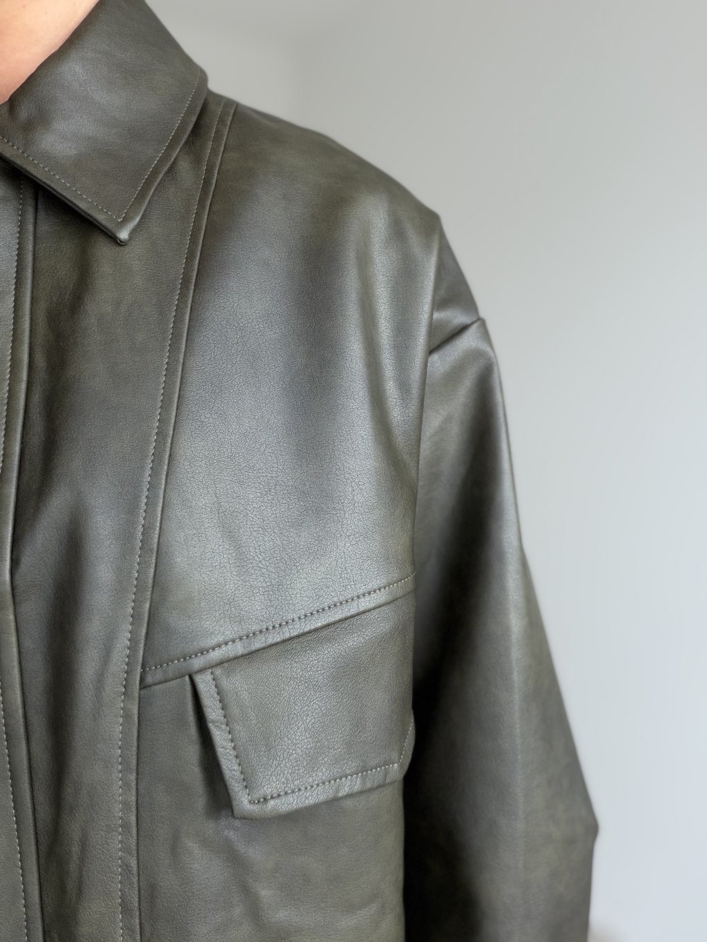 A statement jacket made from a faux leather material in a modern, slightly relaxed fit that instantly elevates any outfit. It features clean lines, a defined collar and a zip fastening for a polished yet effortless look. Practical chest pockets and comfortable sleeves create a timeless street-inspired feel that pairs beautifully with trousers, skirts or dresses. The elasticated hem helps the jacket keep its shape while staying comfortable for all-day wear.