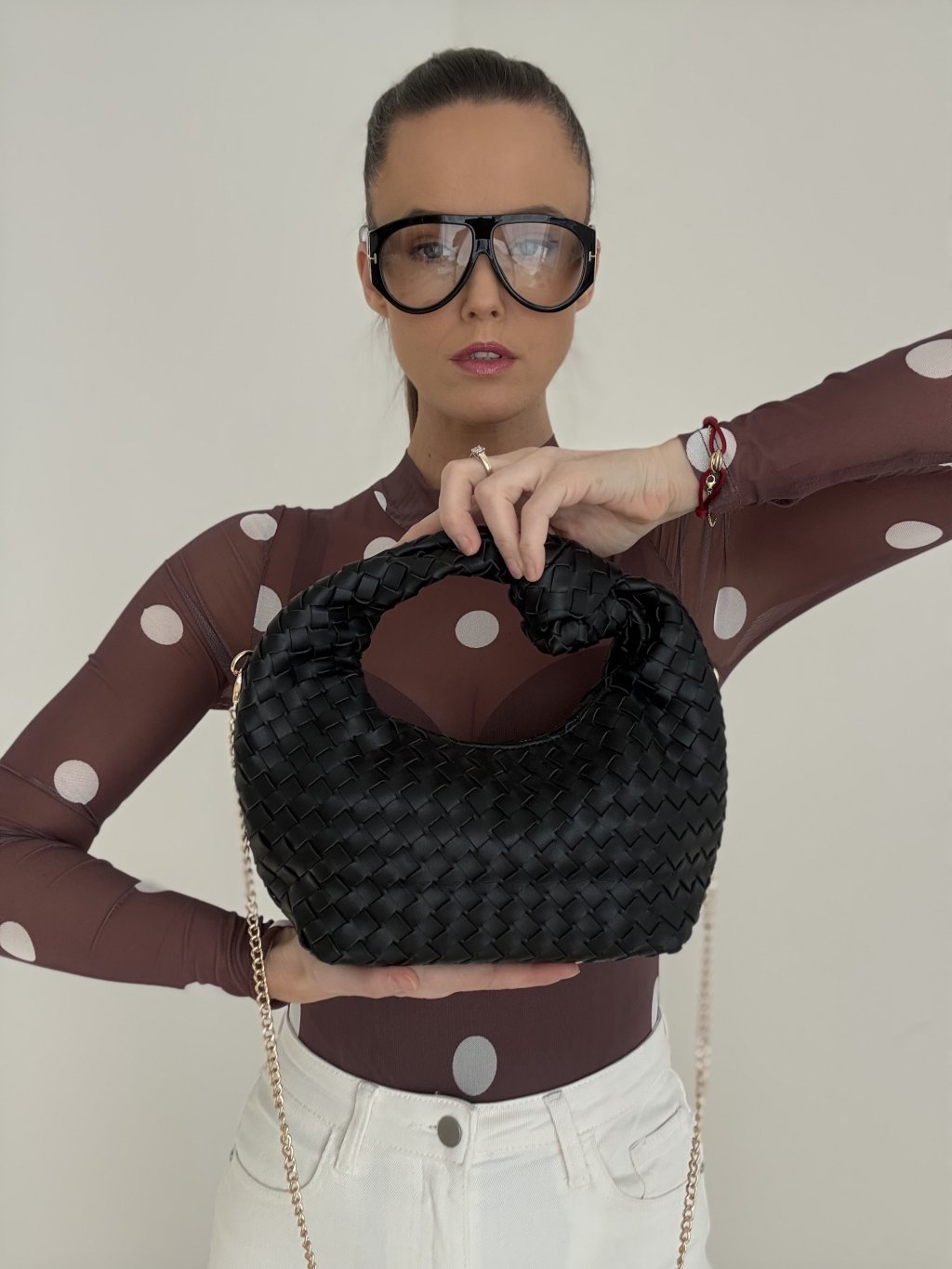 An elegant handbag with a distinctive woven effect that instantly elevates even the simplest look. The rounded silhouette and structured top handle create a modern yet timeless feel, making it easy to style for work, meetings, and evening plans.