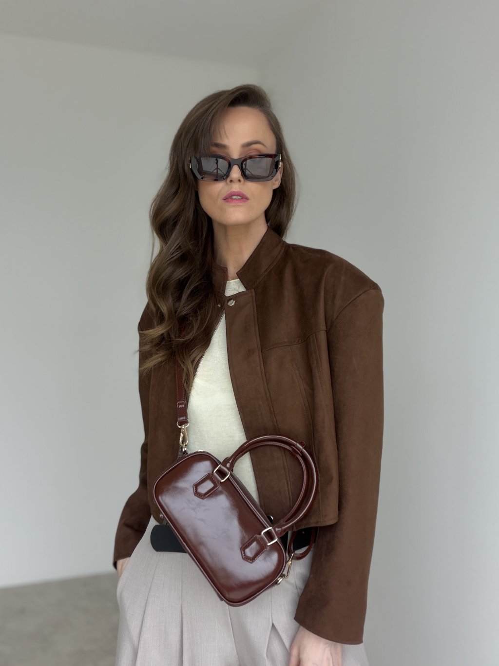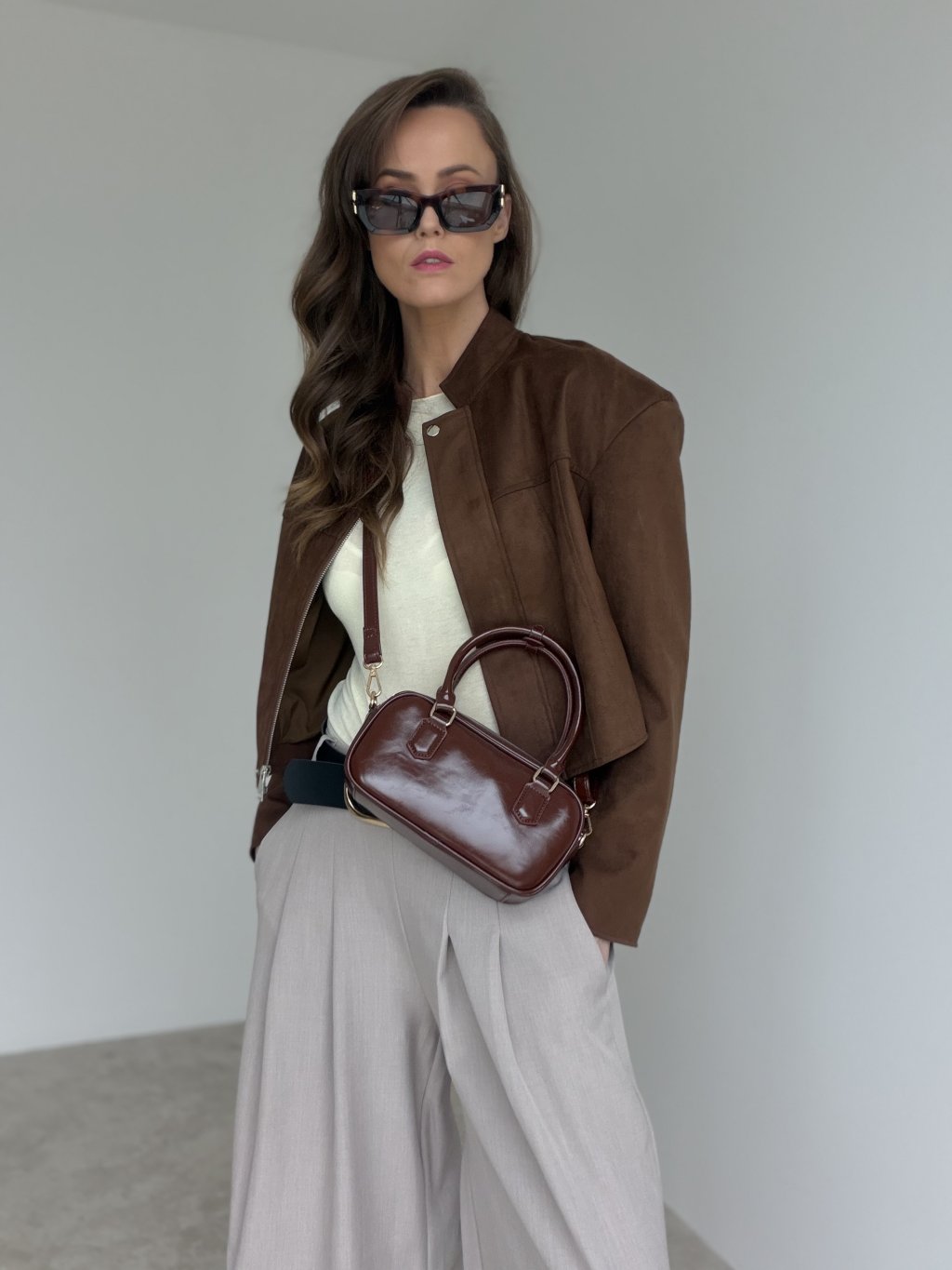 This elegant compact handbag is the perfect accessory for days when you want to carry just the essentials while still looking polished. Its structured shape holds beautifully, and the smooth finish gives it a refined, premium feel. It features top handles for carrying by hand, plus an adjustable strap so you can wear it on the shoulder or as a crossbody. The minimalist design is completed with metal details that add a timeless touch. Easy to style with both smart and casual outfits, it works for workdays, meetings and evening plans alike.