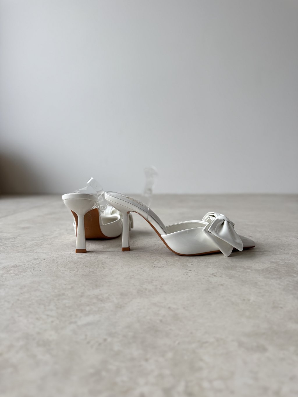 Elegant heeled shoes with an open back and a statement bow at the front are a perfect finishing touch for occasion and bridal outfits. The slim 9 cm heel visually elongates the legs while keeping the look feminine and refined. The pointed toe beautifully slims the foot, and the delicate slingback design helps to keep the shoe secure and comfortable on the foot. The smooth, slightly glossy finish gives them a luxurious feel and turns them into a standout accessory that instantly draws attention.