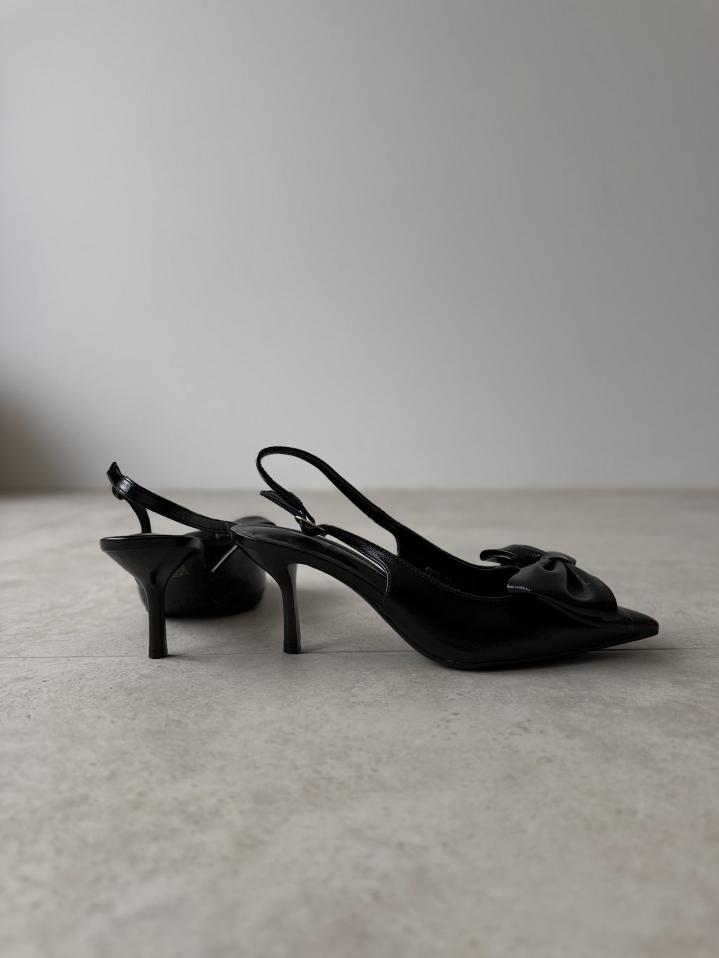 Slingback heels with a pointed toe, bow detail and a slim 7 cm heel. A chic, feminine and comfortable choice for parties, evening events and formal outfits.
