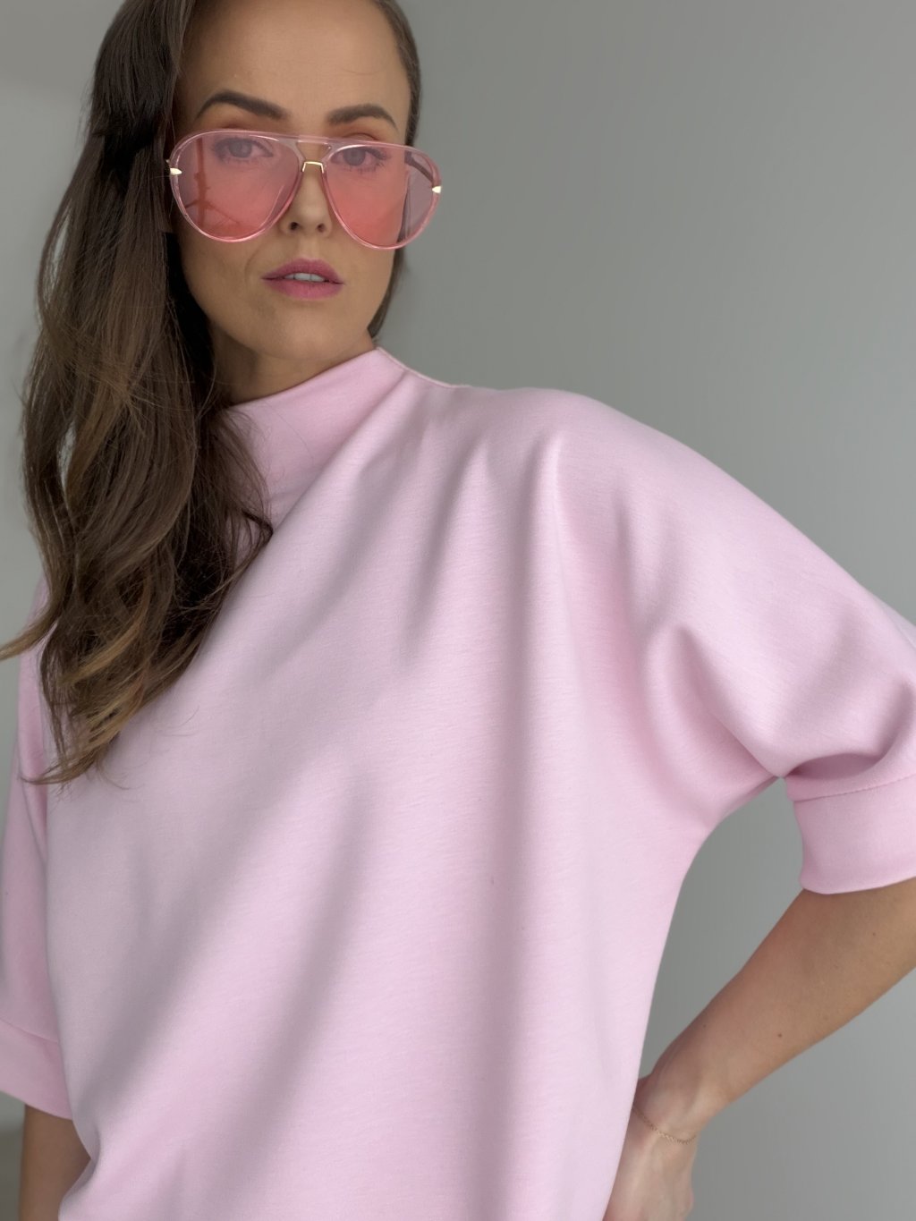This high-neck top is a timeless piece that feels elegant yet effortlessly modern. It features a relaxed silhouette with a gently dropped shoulder and wider sleeves finished with a cuff detail, creating a clean, polished look without needing much styling. The high neckline holds its shape and adds a refined line, making the top easy to pair with wide-leg trousers, skirts, or layered under a blazer. Perfect for everyday wear, work, or any moment when you want a minimal but chic outfit. Soft, pleasant material, prone to snagging.