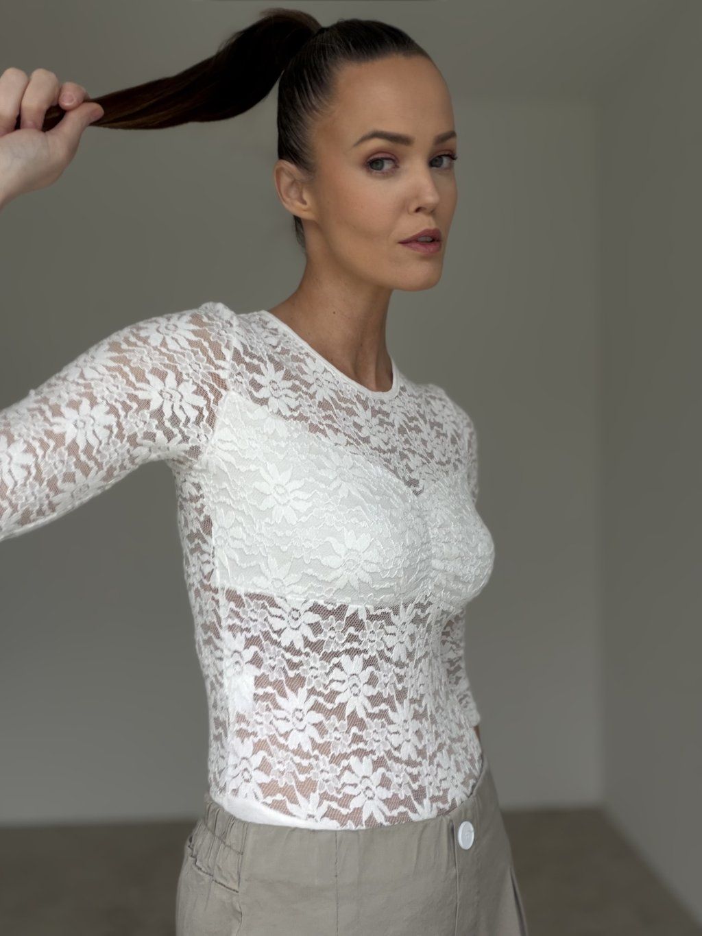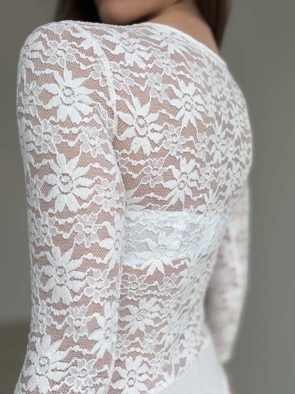 This lace bodysuit is a refined statement piece that instantly elevates your look. The delicate, semi-sheer lace feels light and elegant, while the lined bust area offers more comfort and a polished finish. The close fit flatters the silhouette and, as a bodysuit, it stays perfectly in place without adding bulk under trousers or skirts. Style it with high-waisted bottoms, a sleek skirt, or layer it under a blazer for an effortlessly chic outfit.
