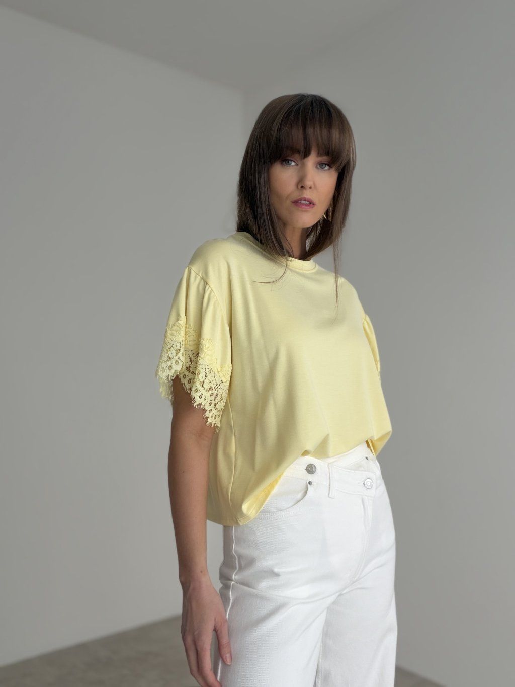 An elegant piece that combines simplicity with a delicate feminine detail. The airy fit feels comfortable on the body and is easy to style for both everyday wear and more polished looks. The standout feature is the romantic sleeve design, which gives the whole piece a soft and sophisticated character.
