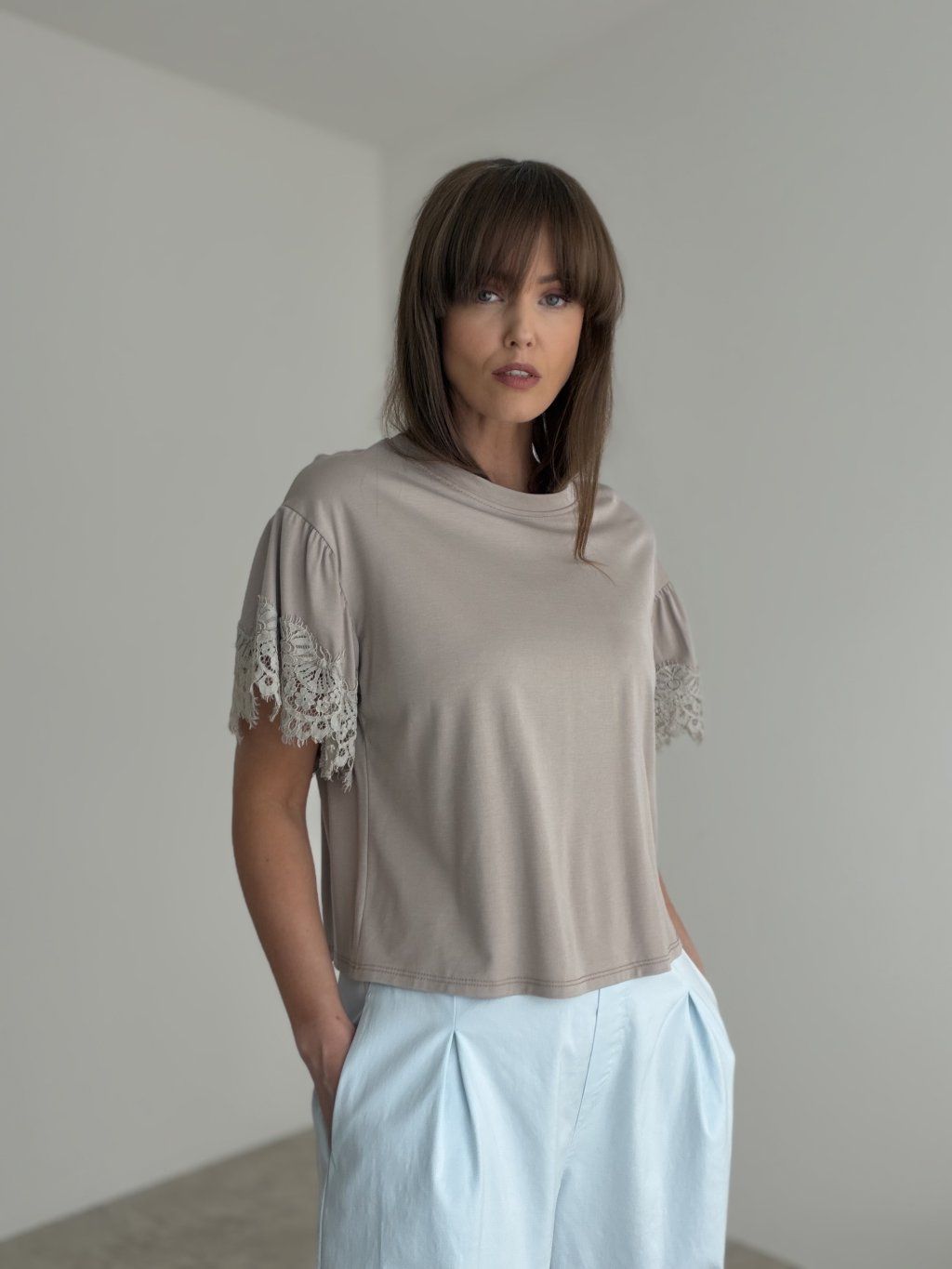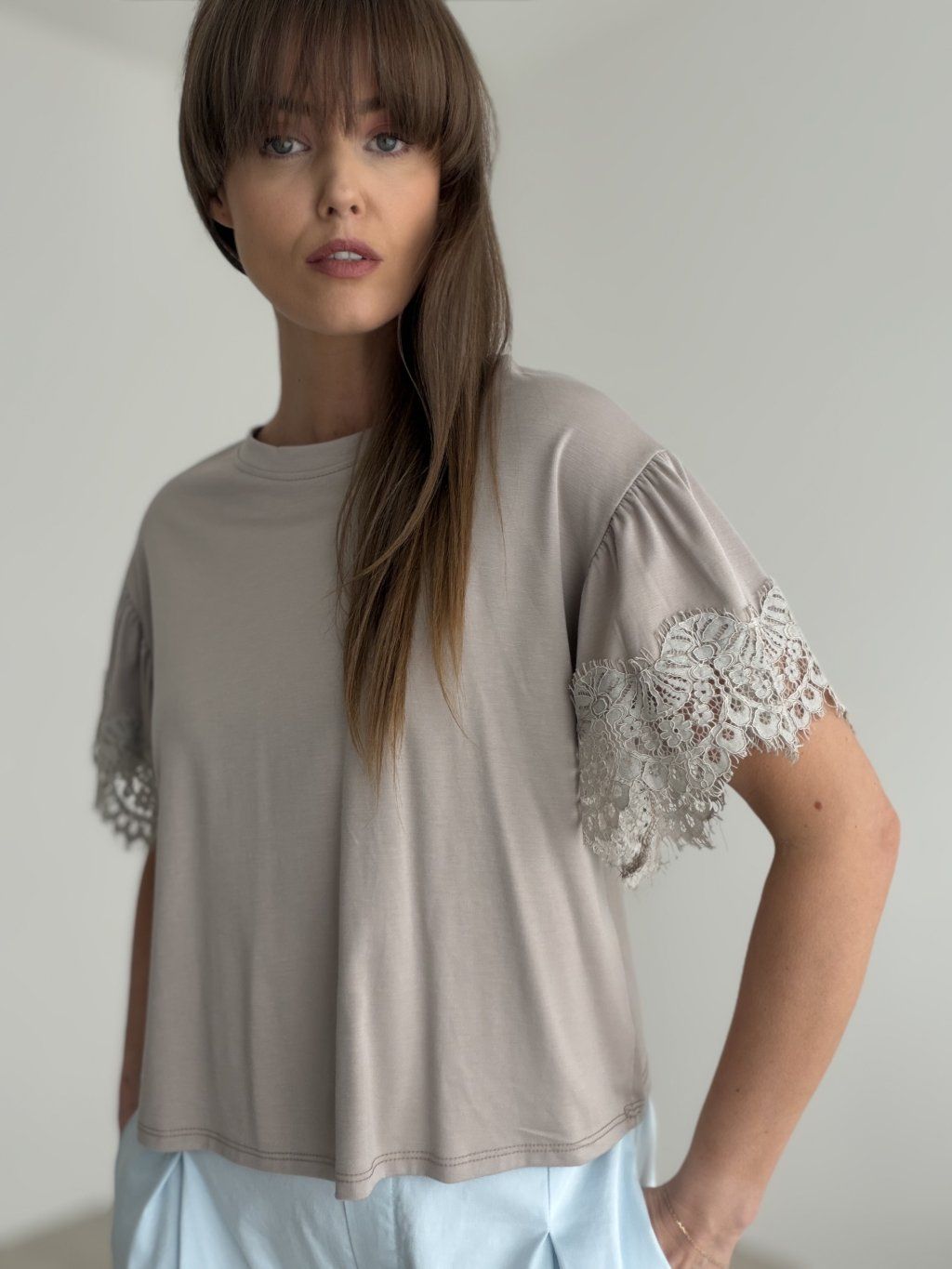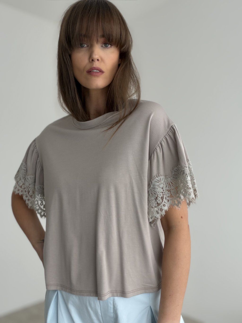 An elegant piece that combines simplicity with a delicate feminine detail. The airy fit feels comfortable on the body and is easy to style for both everyday wear and more polished looks. The standout feature is the romantic sleeve design, which gives the whole piece a soft and sophisticated character.