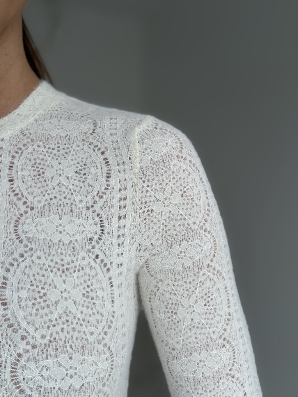 Fitted lace long-sleeve top with a round neckline. An elegant piece for everyday wear and special occasions.