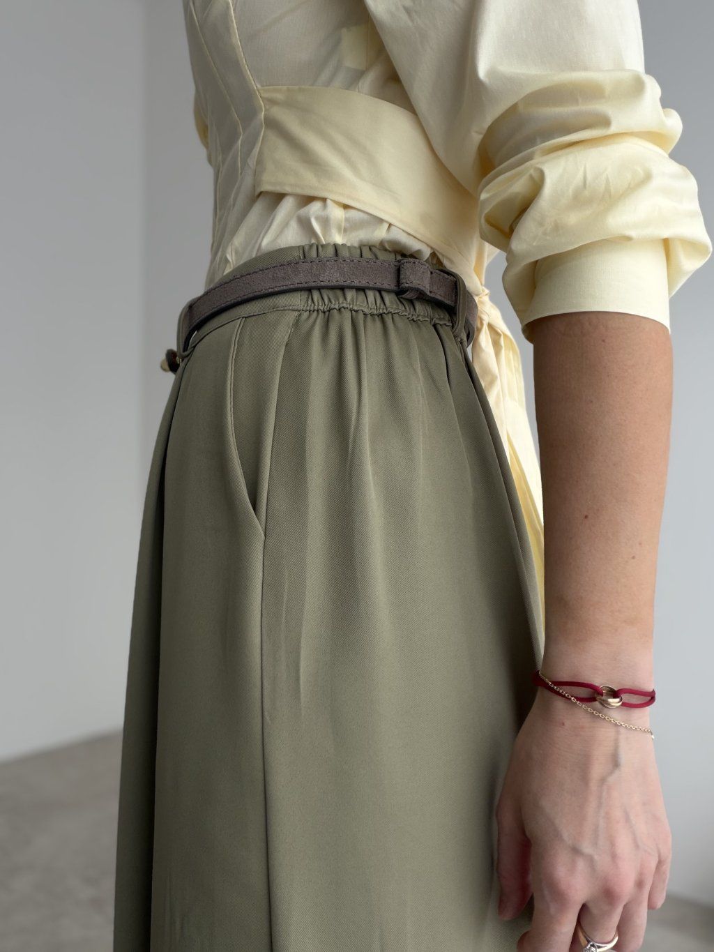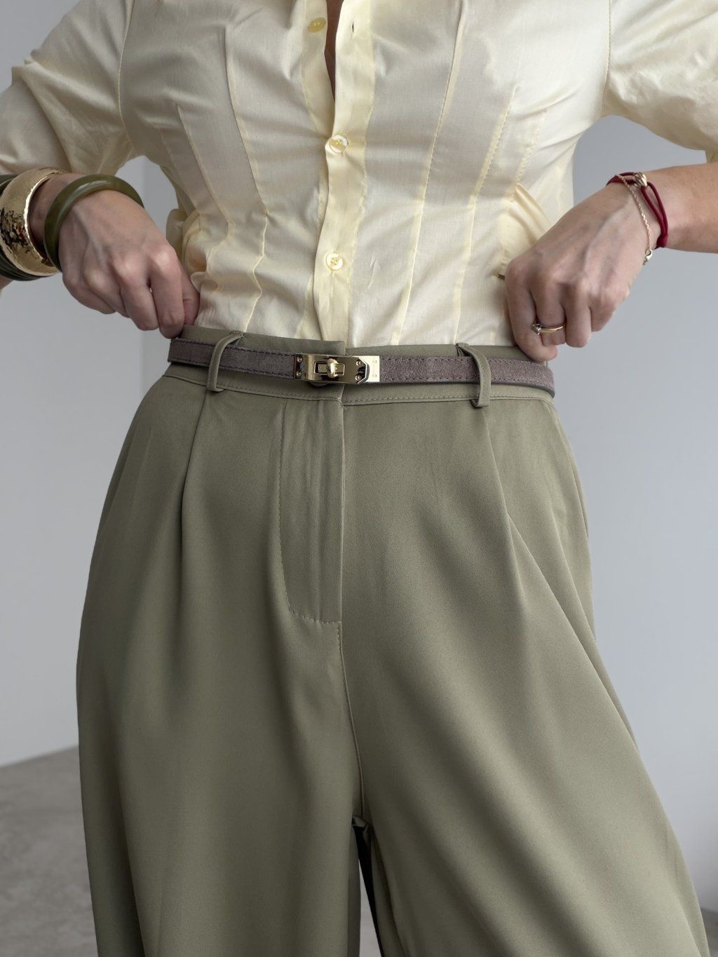 With wide-leg trousers, tuck in your top and let the belt create a clean focal point.