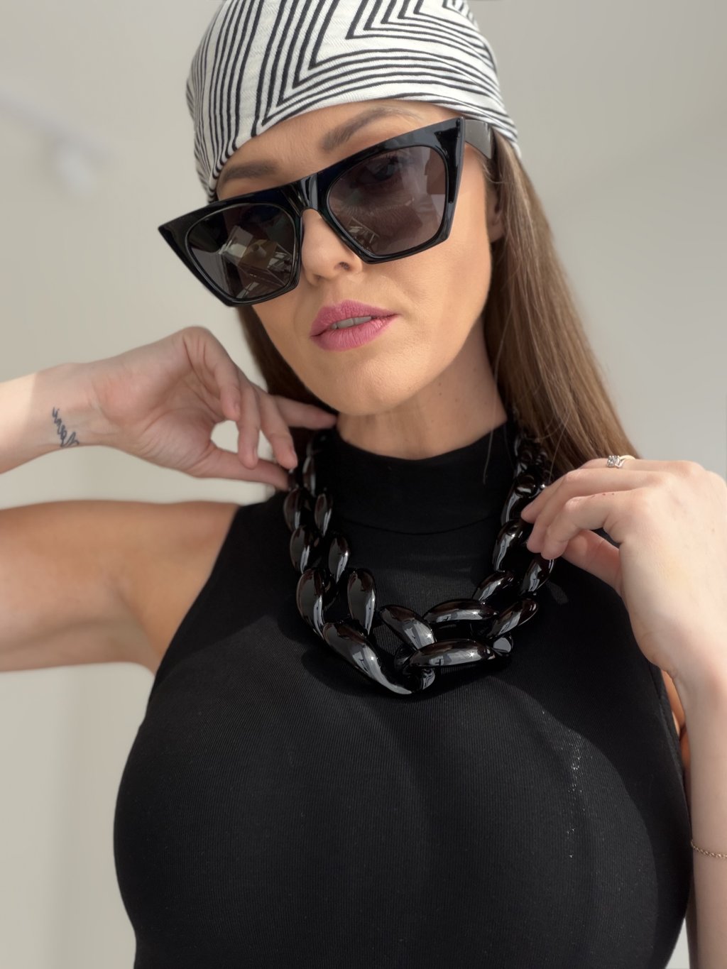 It looks especially striking with a simple T-shirt, a clean-cut knit, or minimal dresses. A perfect choice when you want one standout accessory that does the styling work for you.